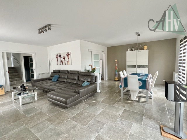 Elle se compose d’une belle pièce de vie lumineuse, d’une cuisine équipée, de 4 chambres, d’un bureau ainsi que de nombreux espaces de rangement (buanderie, cellier, dressing).