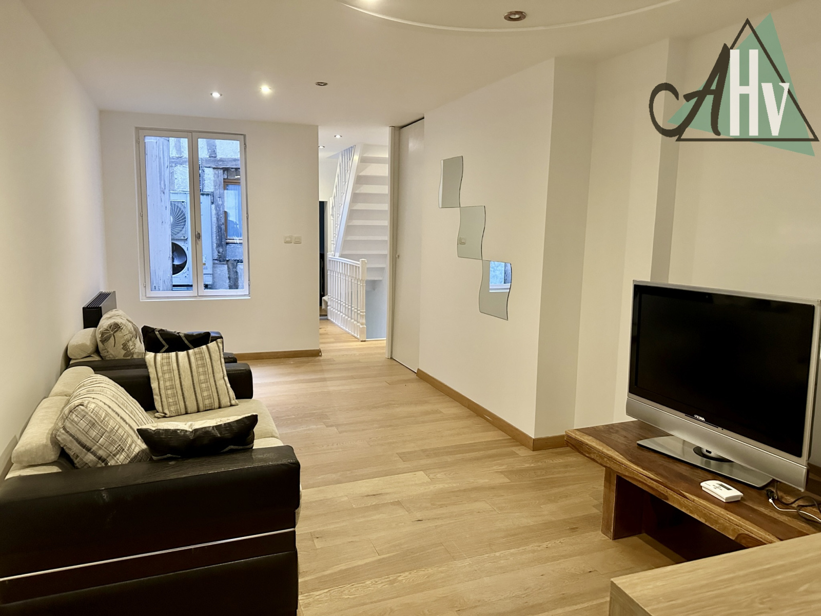 Au dessus appartement de 90 m2 type 3, salon, cuisine aménagée, 2 chambres, bureau et mezzanine. ce logement est vide actuellement, possibilité de loué 700 € par mois.