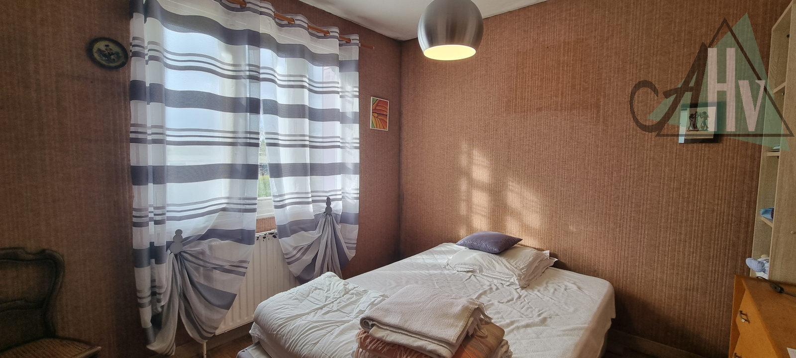 Elle se compose comme suit : entrée avec dégagement, séjour avec insert bois et cuisine ouverte, WC, salle de bains, trois chambres.