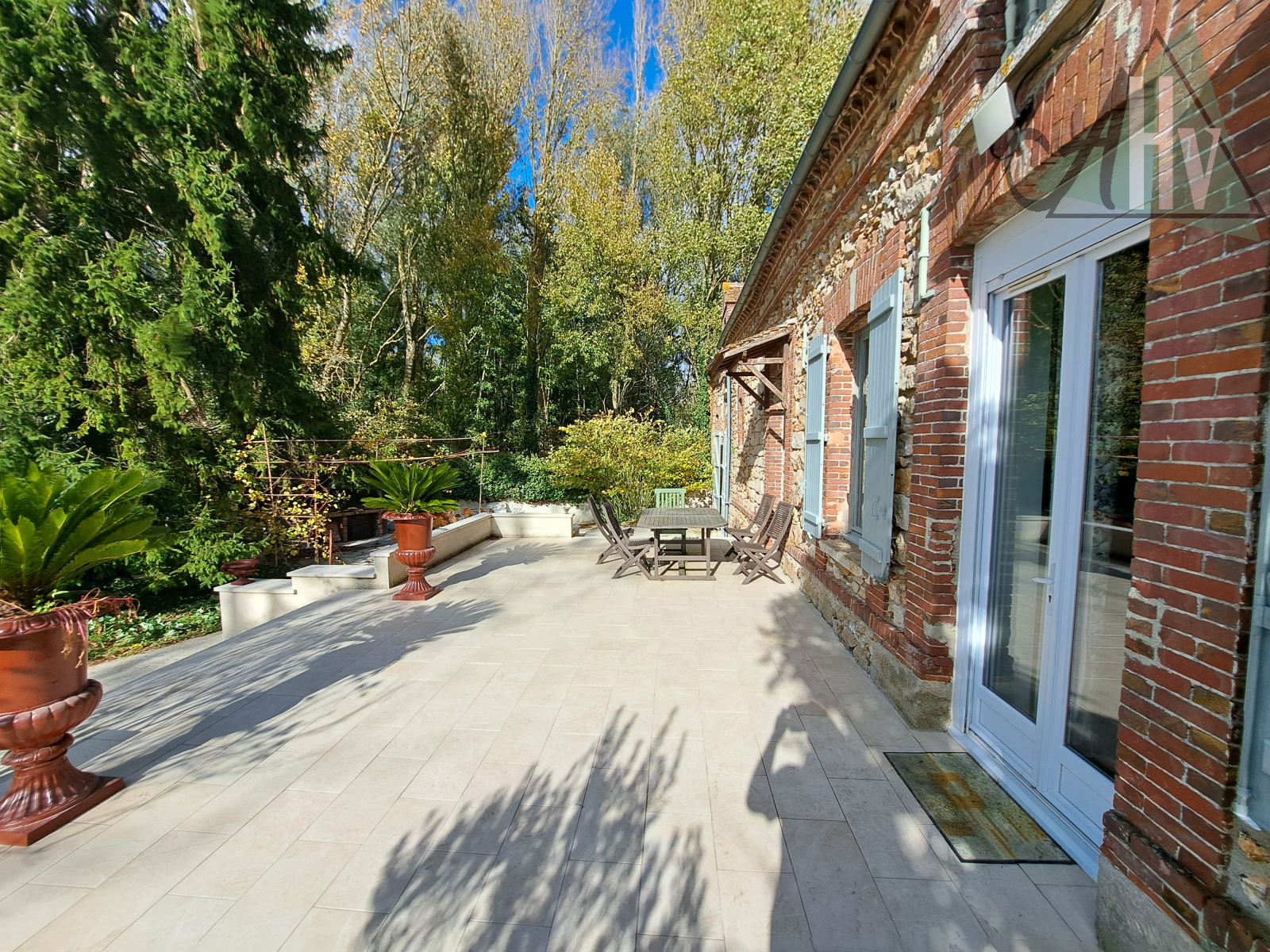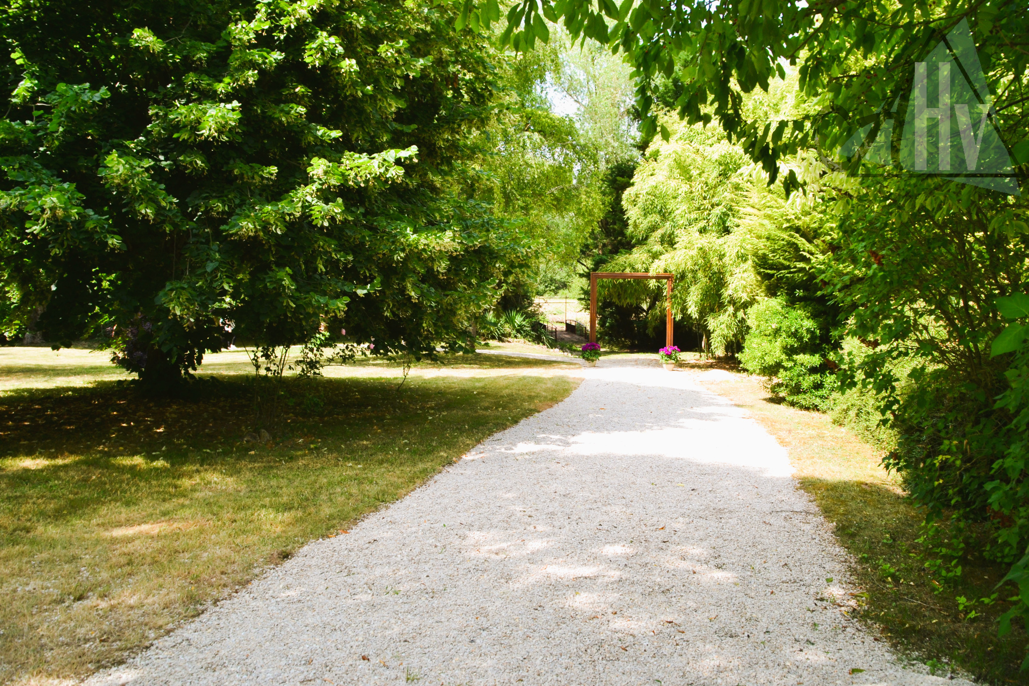 Sur un magnifique terrain arboré de près d'un hectare, traversé par une jolie rivière, agrémenté d'un petit pont.