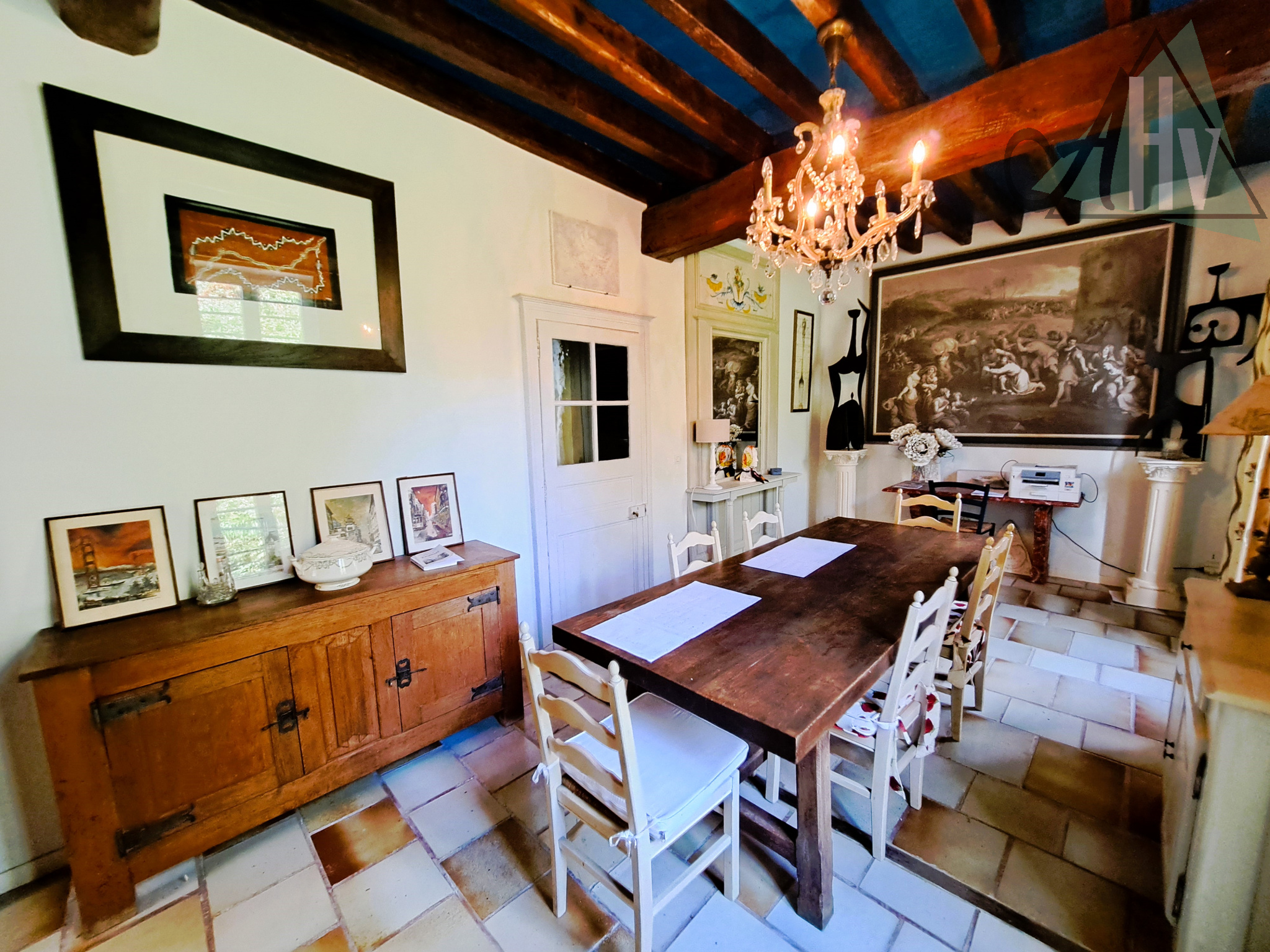 - Maison principale d'habitation : au RDC : cuisine aménagée équipée de 19 m², grand salon de 54 m² avec cheminée-insert, salle à manger de 22 m², deuxième salon de 45 m² avec cheminée monumentale, bibliothèque et boiseries, chambre de 13 m² avec parquet Versailles, salle d'eau (douche à l'italienne) avec wc, dégagements avec placards, wc séparés. A l'étage : palier, deux belles chambres (20 et 17,5 m²), salle de bains avec wc, dressing, dégagement. Grenier aménageable de 109 m² avec chape isolante.Belle cave voutée d'environ 34 m². Piscine couverte (9 x 4). Grande terrasse carrelée.