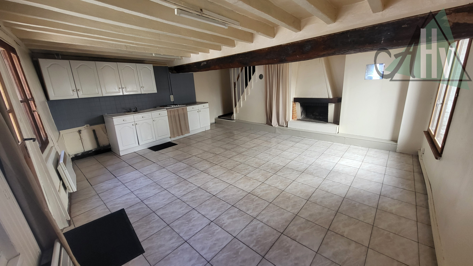 Au rez-de-chaussée : entrée sur salon-séjour ouvert sur cuisine aménagée équipée,
