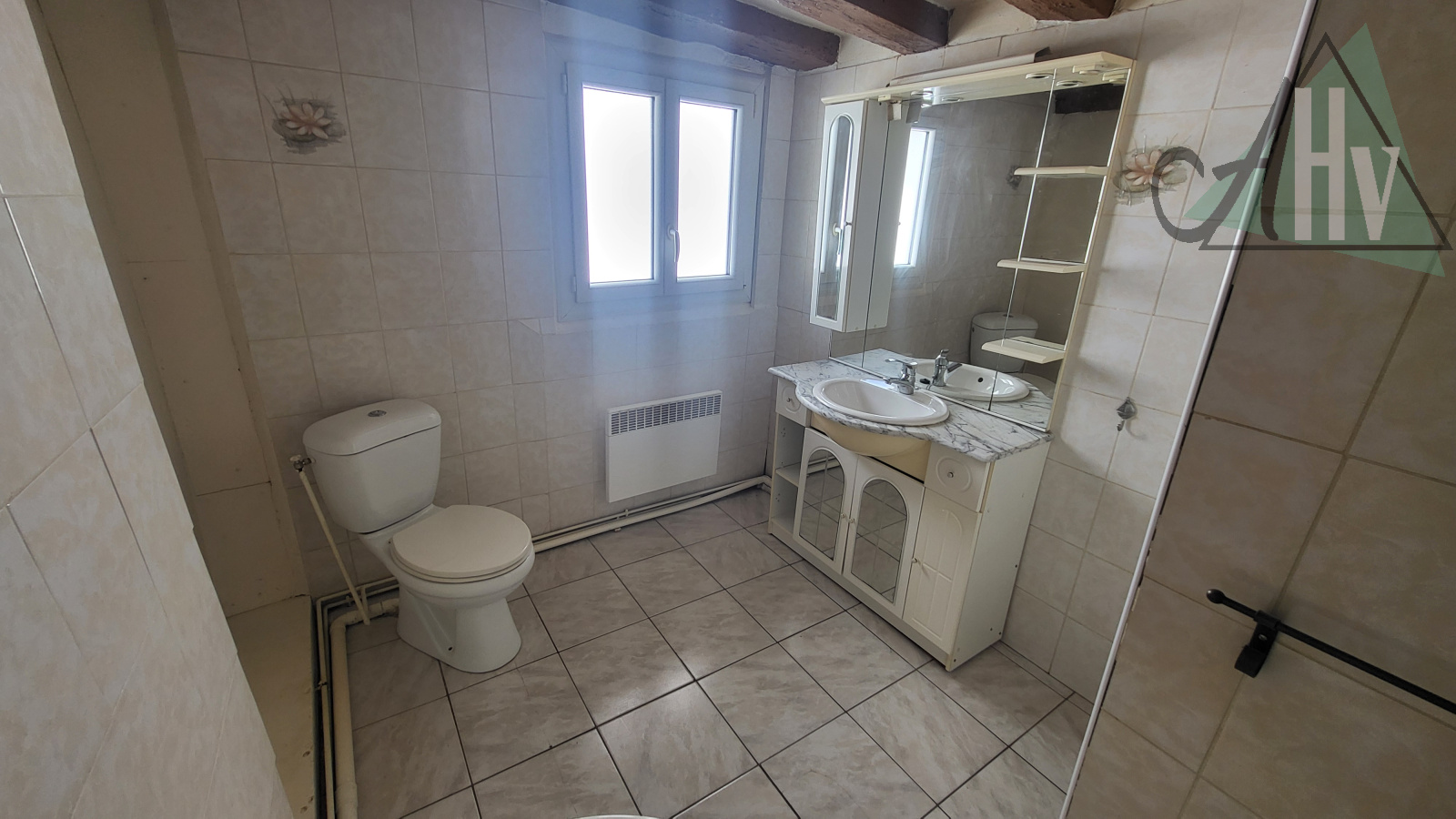 A l'étage : deux chambres, salle de bains avec WC