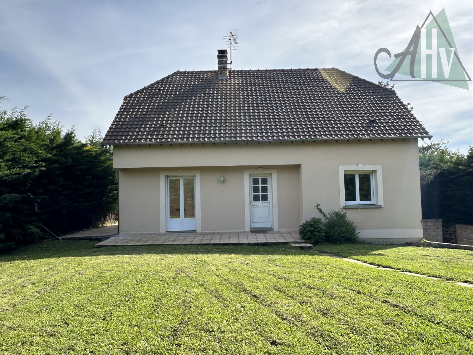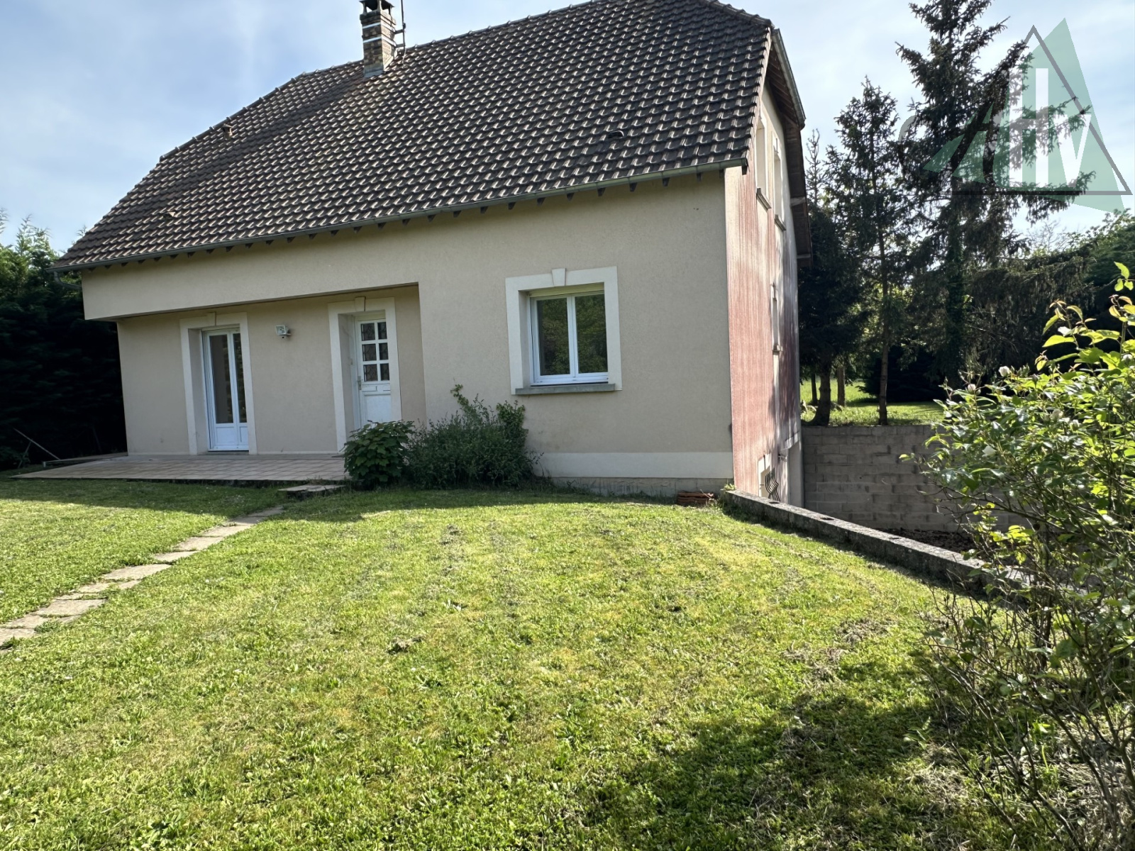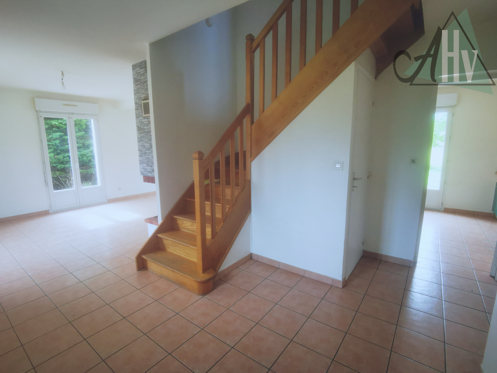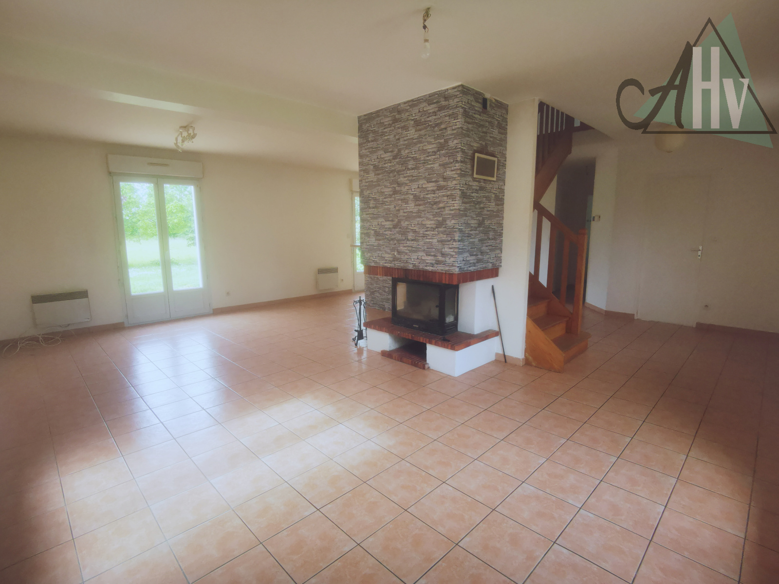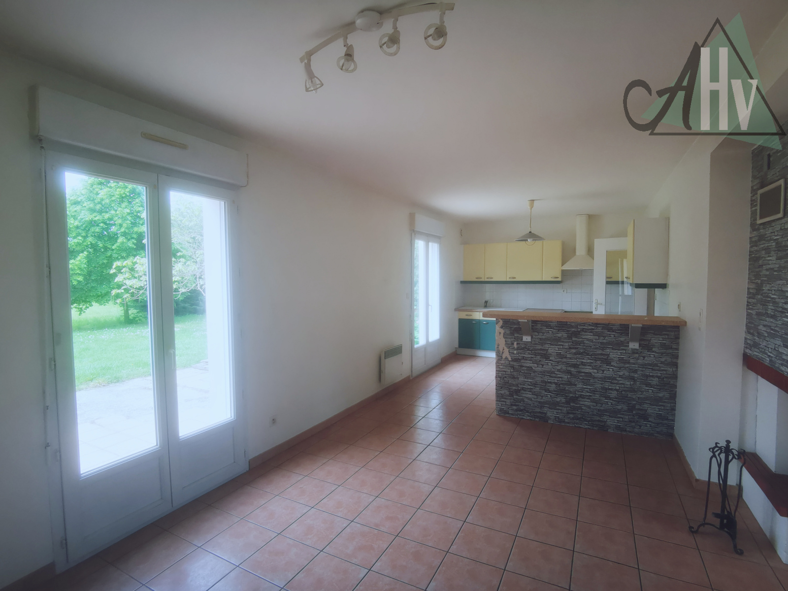 Au rez-de-chaussée : entrée sur salon-séjour ouvert sur cuisine, chambre, dégagement, WC, salle d'eau