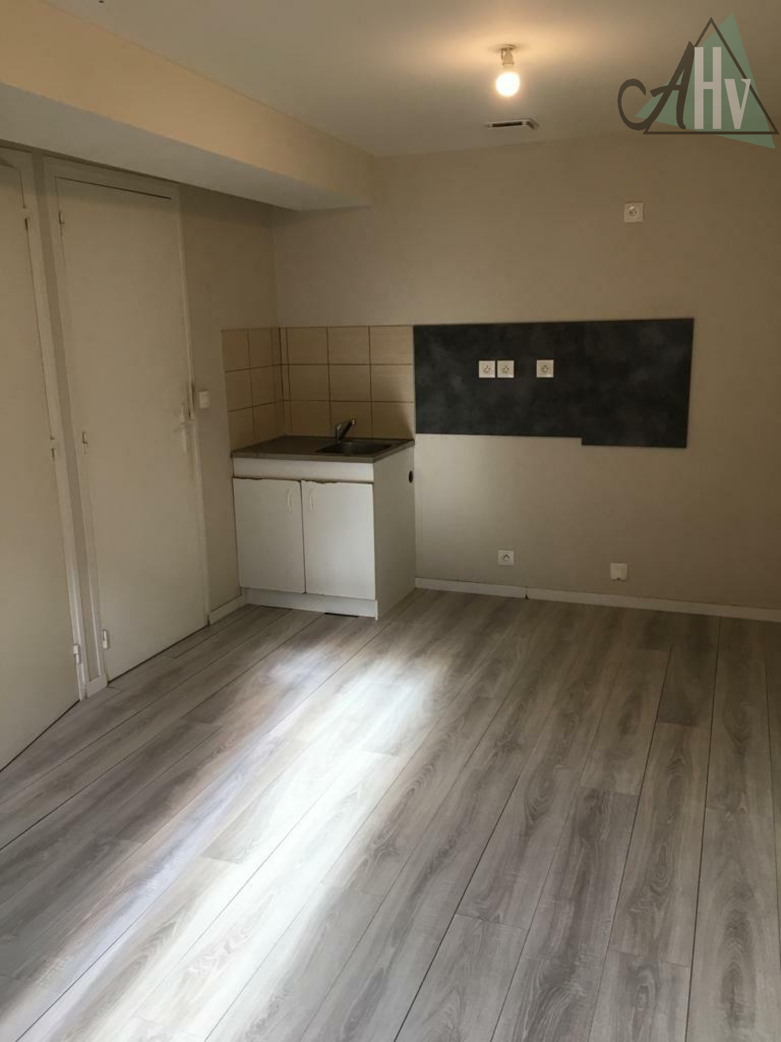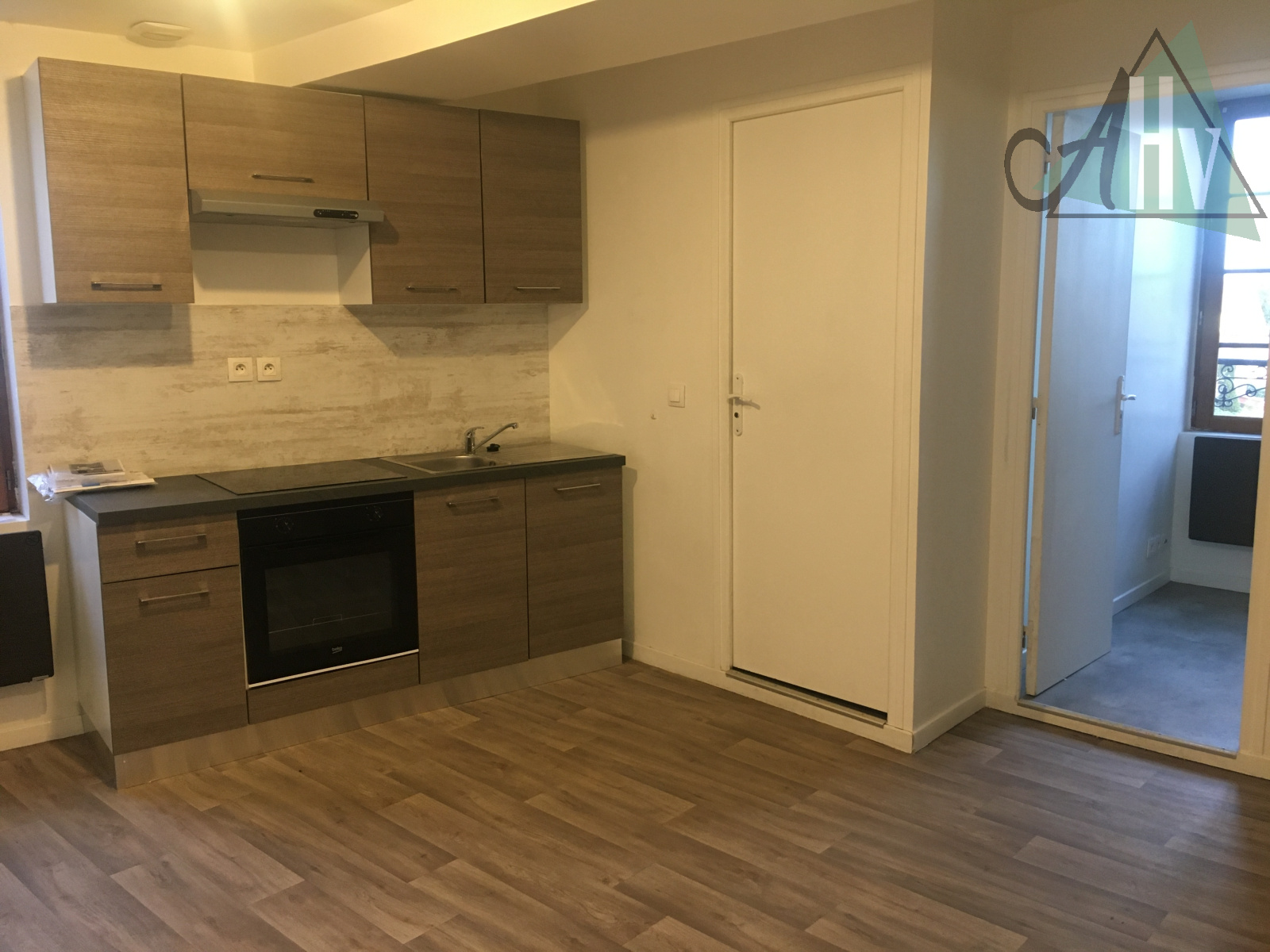 1er Appartement de type F2 loué (415€ / mois) comprenant : entrée sur séjour ouvert sur cuisine, une chambre, salle d’eau avec wc,