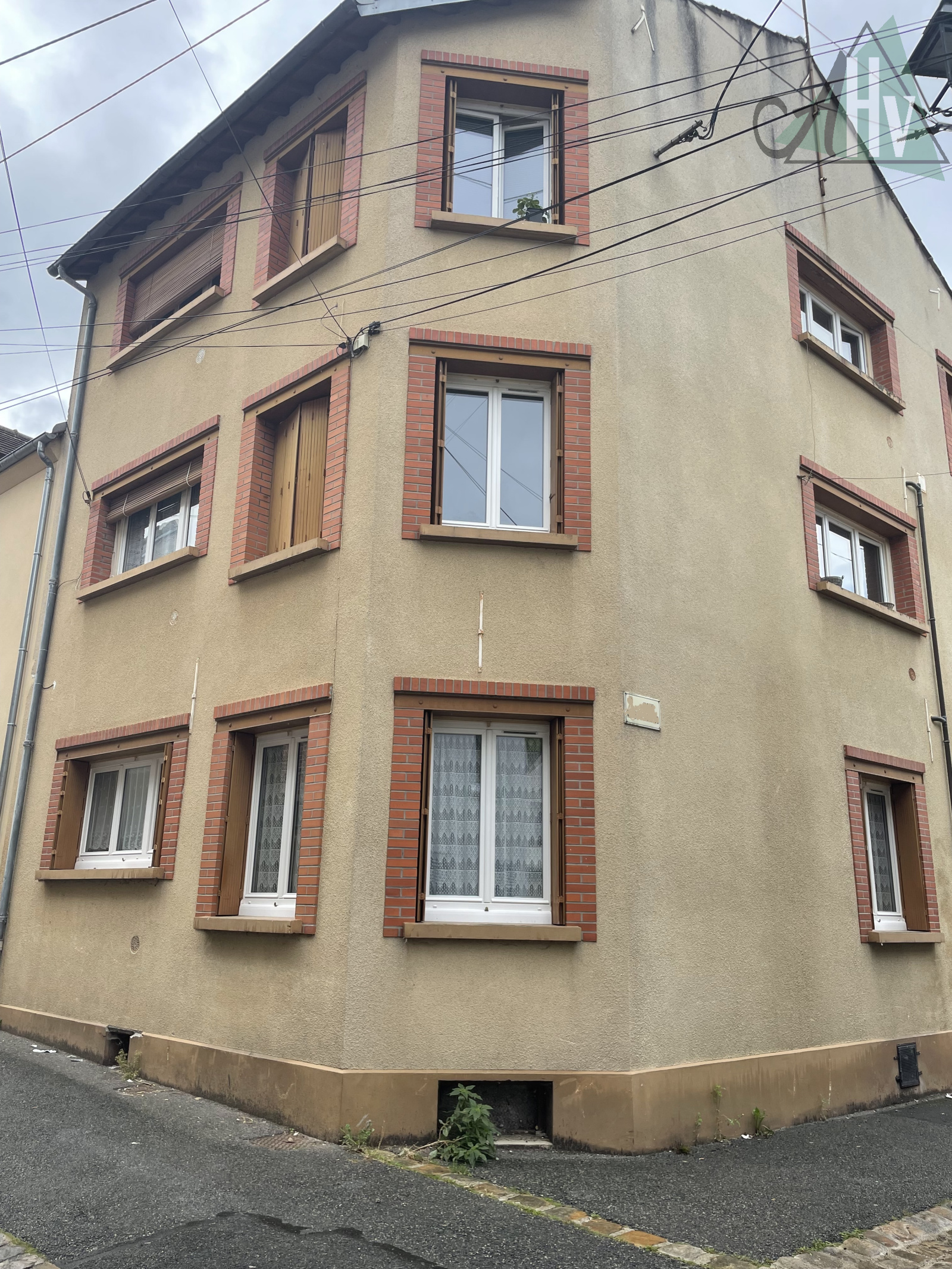 Au 1er étage, un appartement de type F3 composé d'une entrée, séjour, cuisine, deux chambres, salle d'eau, WC pour une surface de 55,62 m² (Loi Carrez). Loué 513 € + 85 € de charges (fioul, EDF parties communes, ordures ménagères).