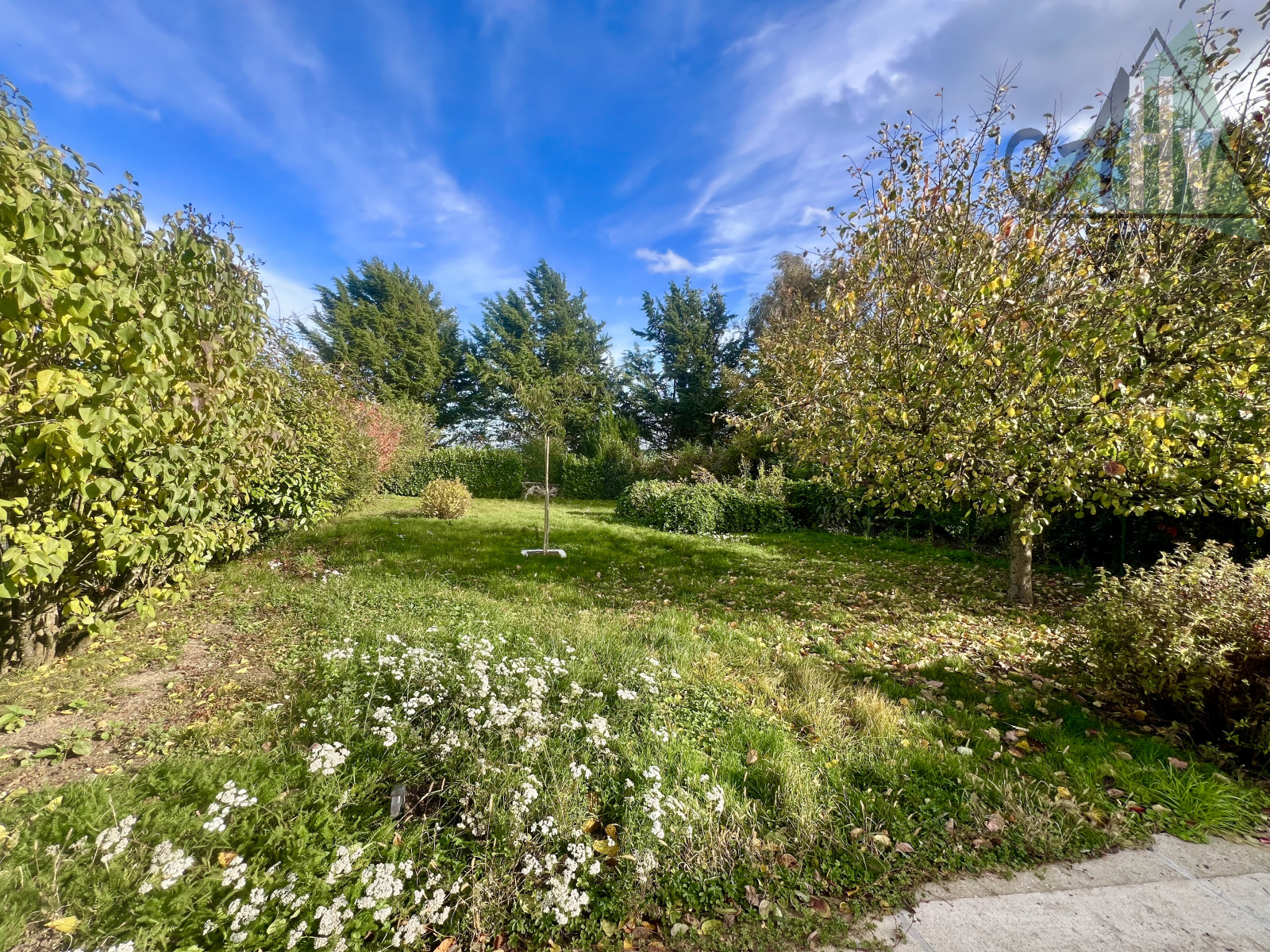 Côté extérieur : un jardin de 1 187 m2 environ possédant un double accès, agrémenté d’un puits vous invite à profiter de son calme et de sa verdure.