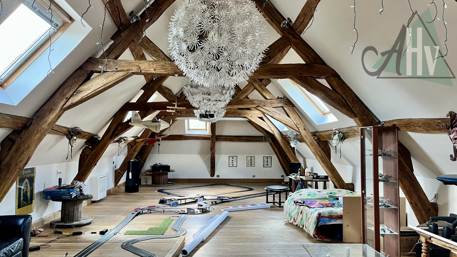 Au second et dernier étage : une chambre avec salle d'eau, un WC, un salon cathédrale de 110 m2.