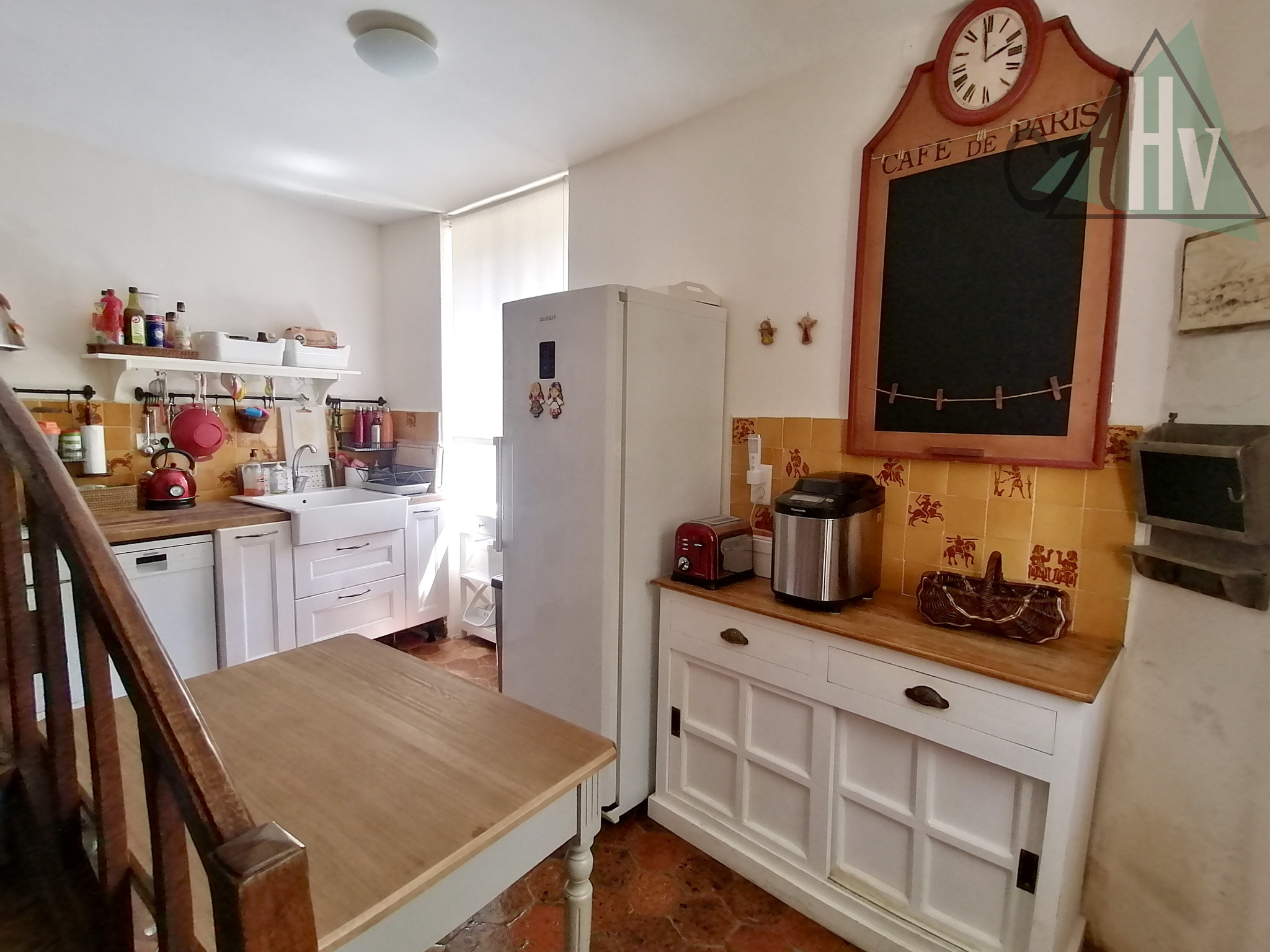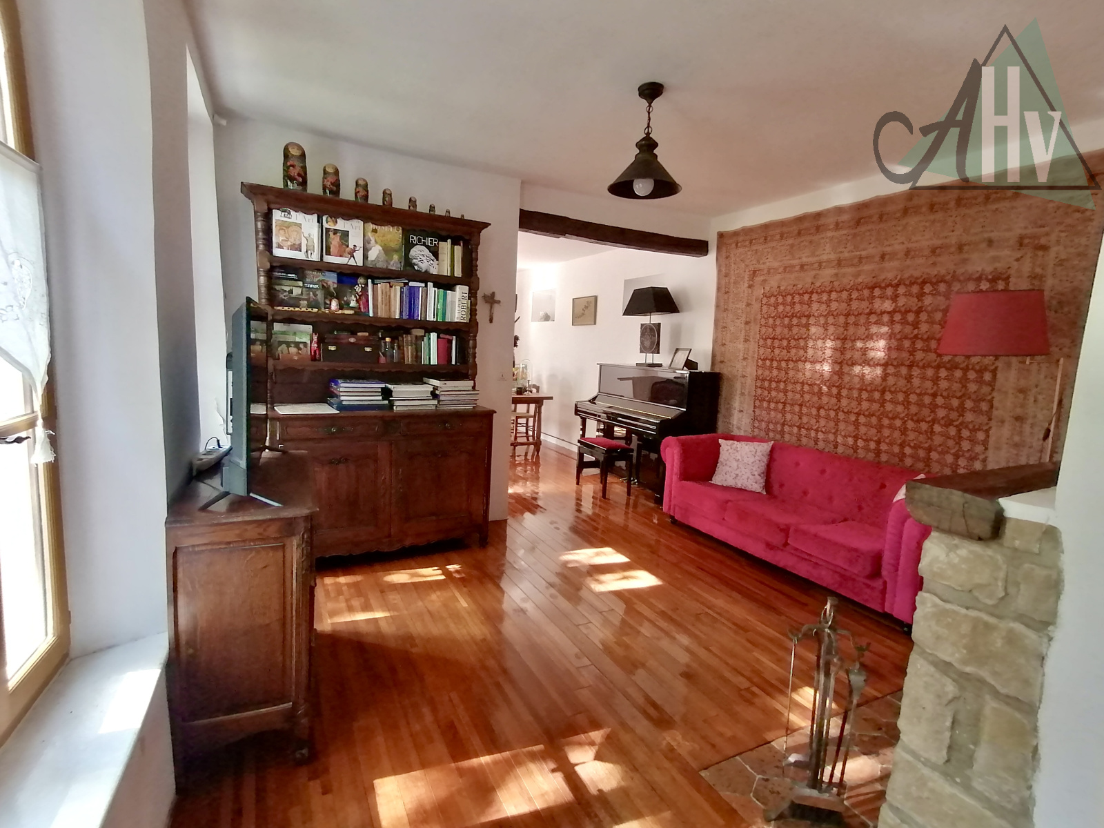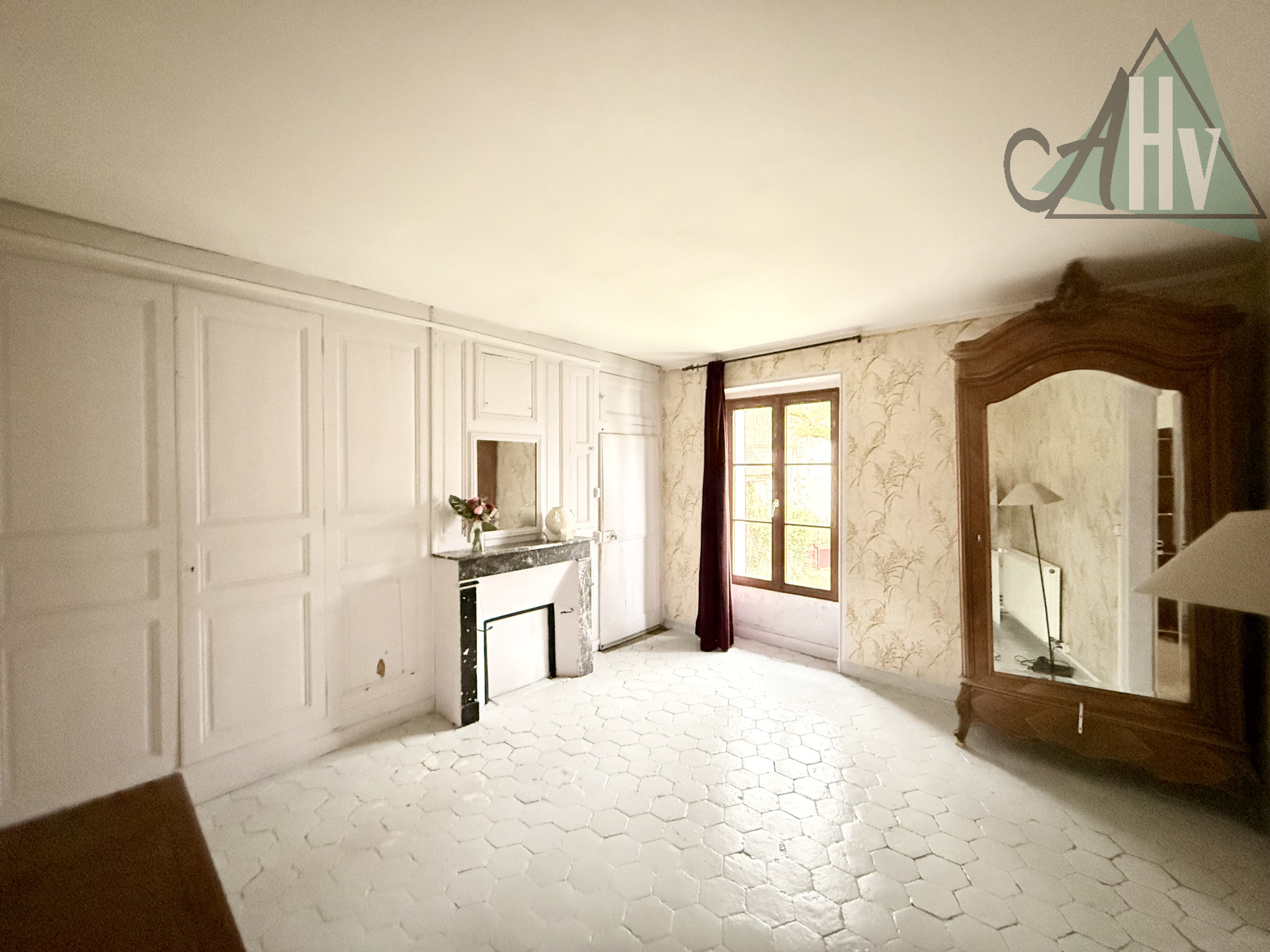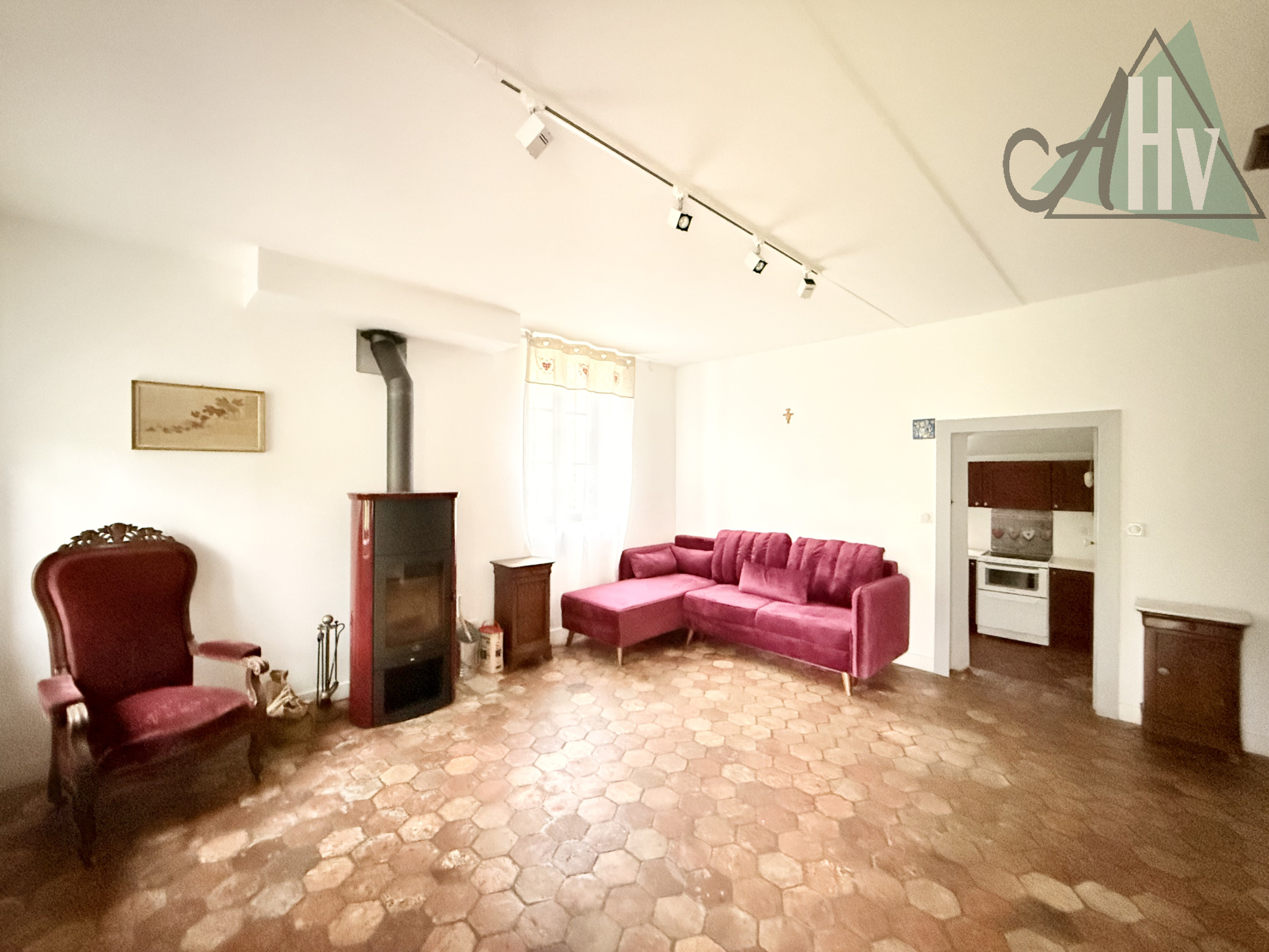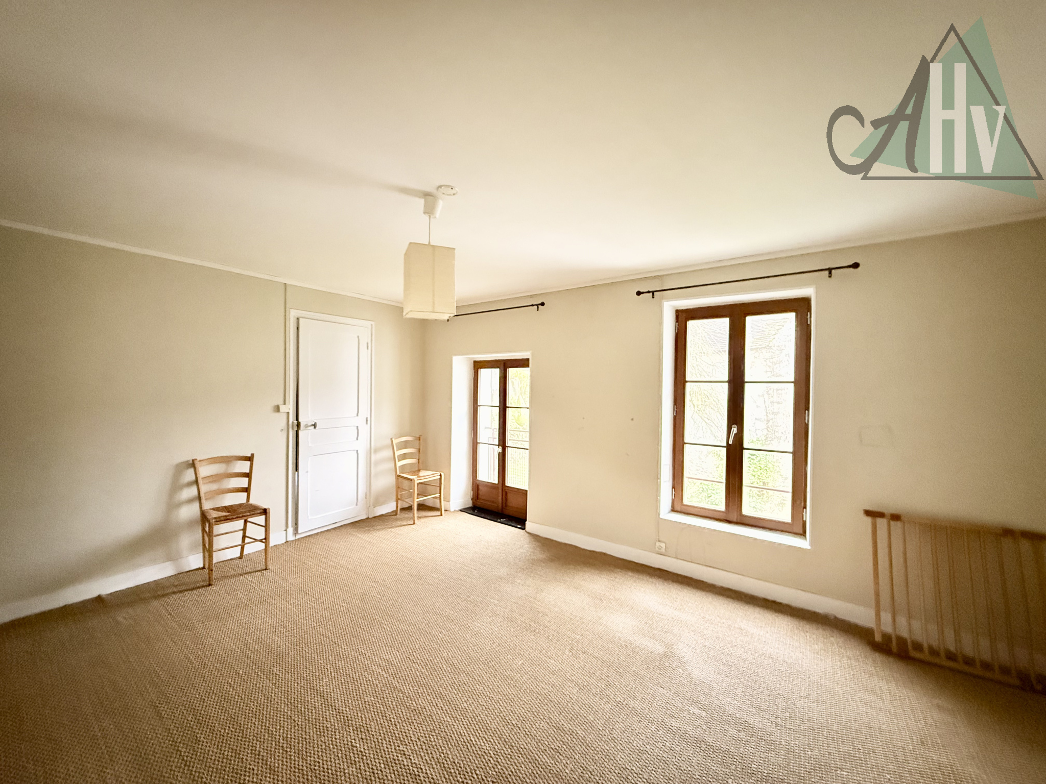 Au rez-de-chaussée : une cuisine, un double-séjour avec cheminée insert, une salle d'eau avec WC, un cellier.