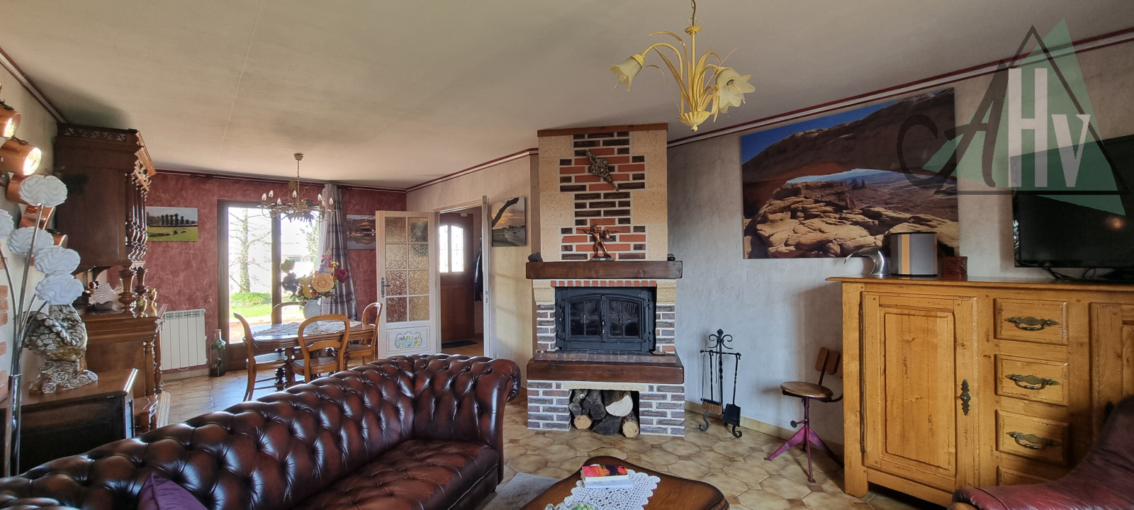 La maison se chauffe à l'électricité mais vous pourrez également bénéficier de la chaleur de la flemme avec l'insert bois, double vitrage et tout à l'égout !
