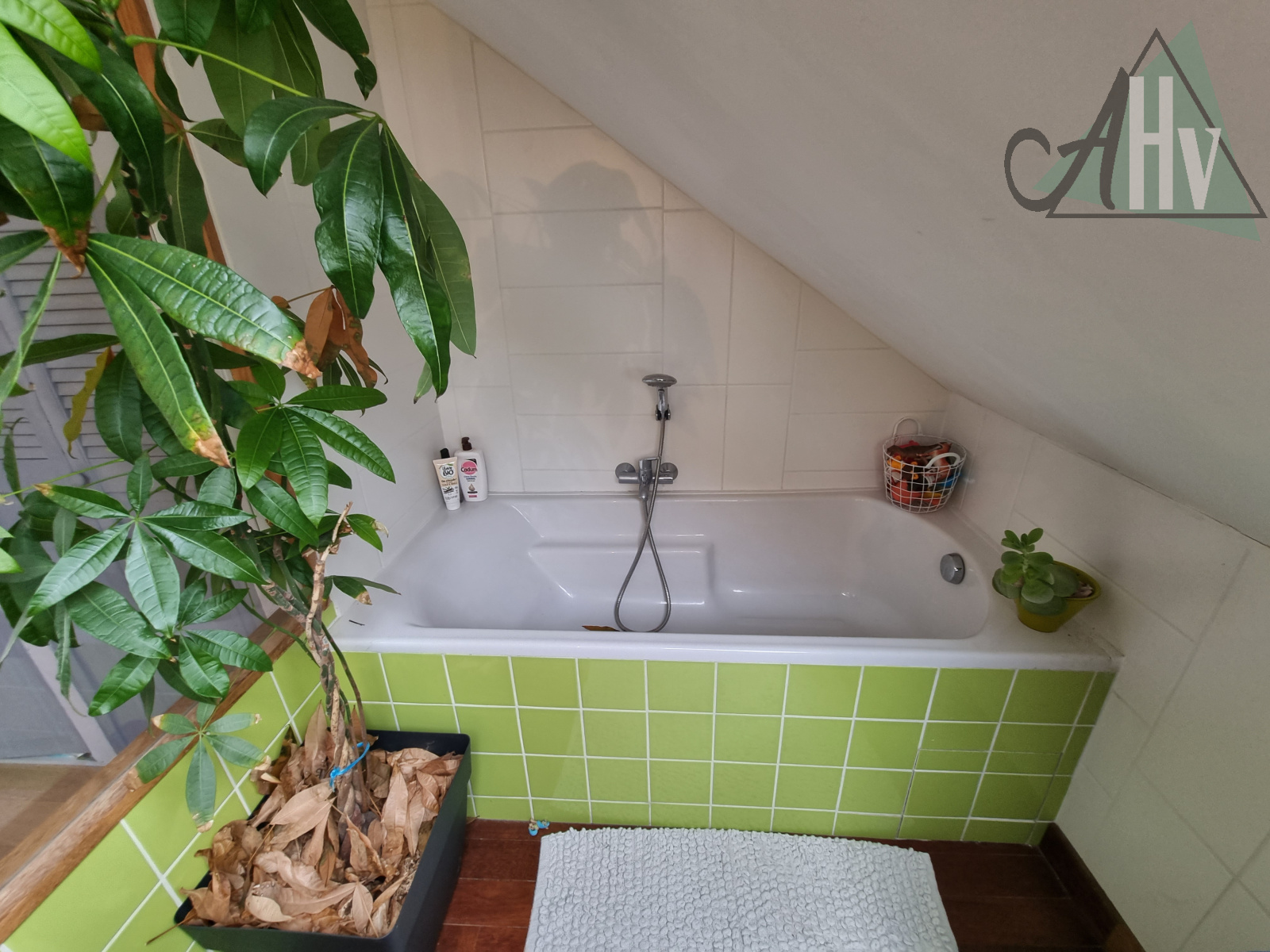 A mi-étage se trouve une salle de douche avec WC ainsi qu'un bureau duquel on peut accéder directement au jardin.