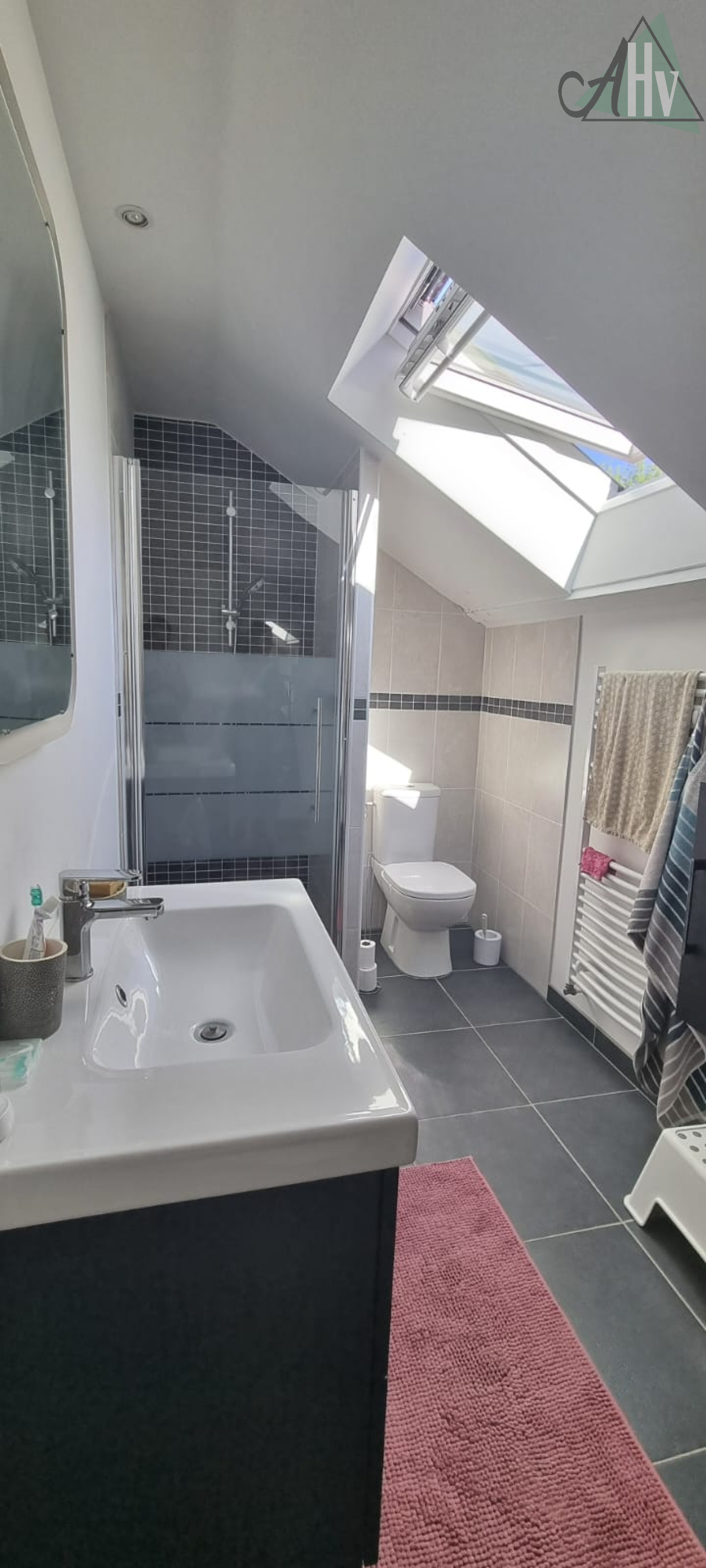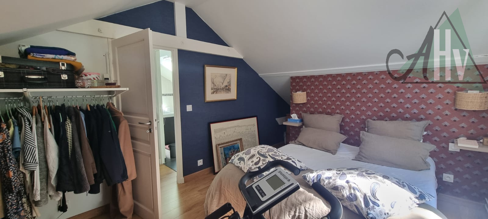 A l'étage supérieur, une belle chambre mansardée, un espace nuit installé sur la pièce palière pouvant faire office de bureau ou de chambre, ainsi qu'une salle d'eau avec WC viennent compléter ce bien.