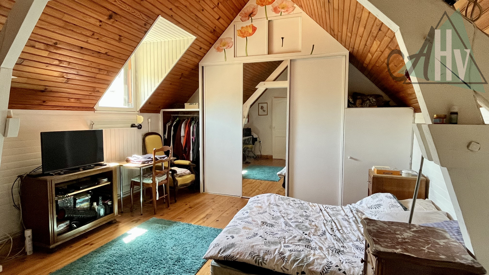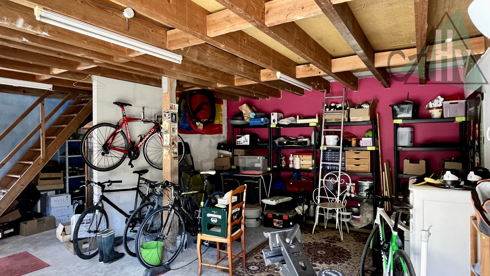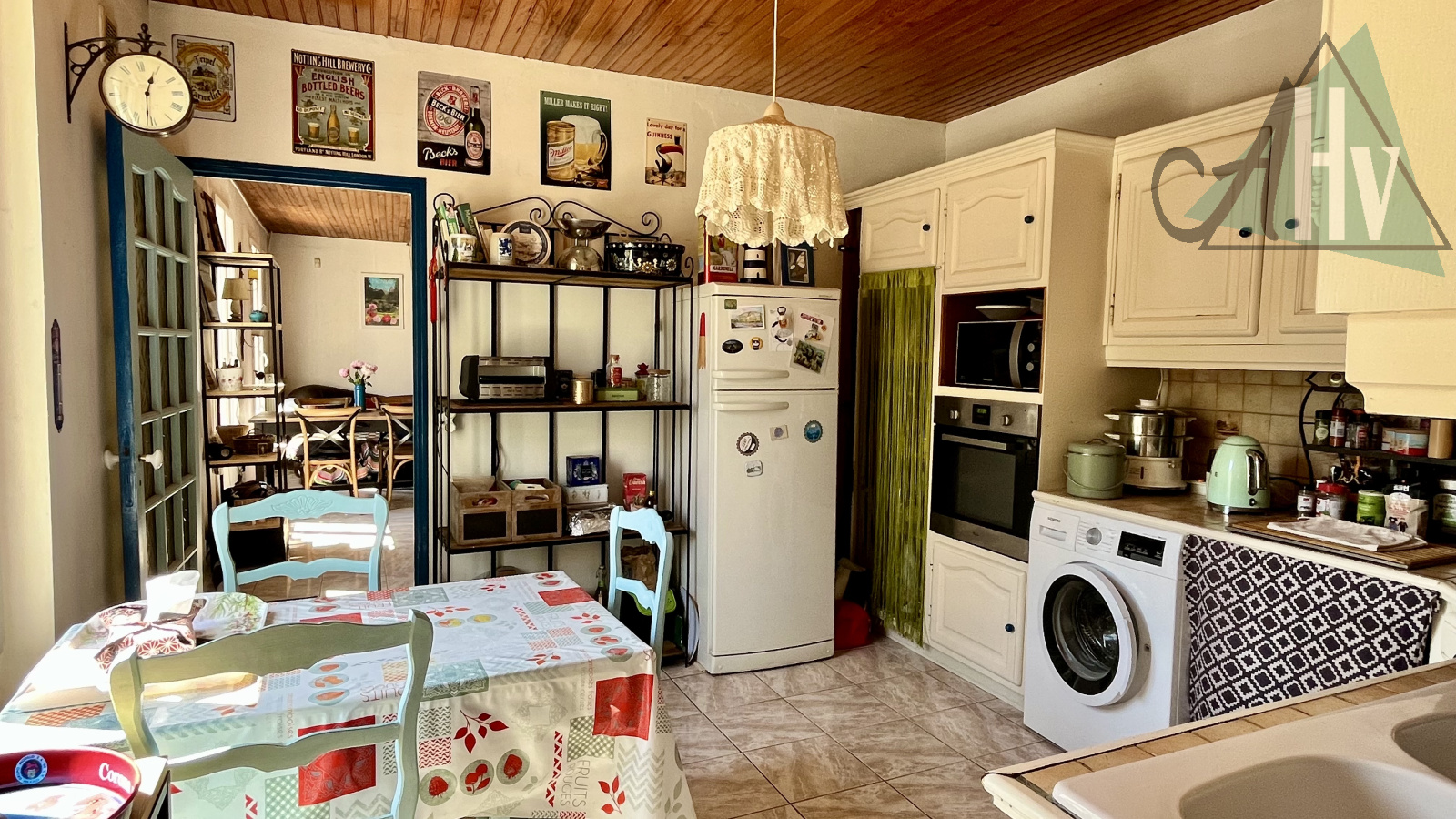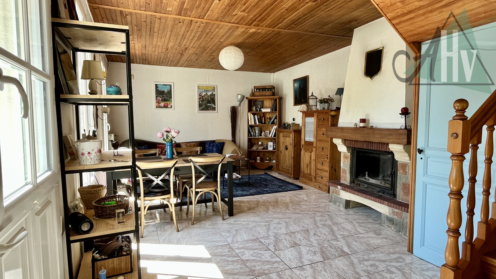 Au rez-de-chaussée : salon séjour avec insert, cuisine, salle d'eau, WC.
