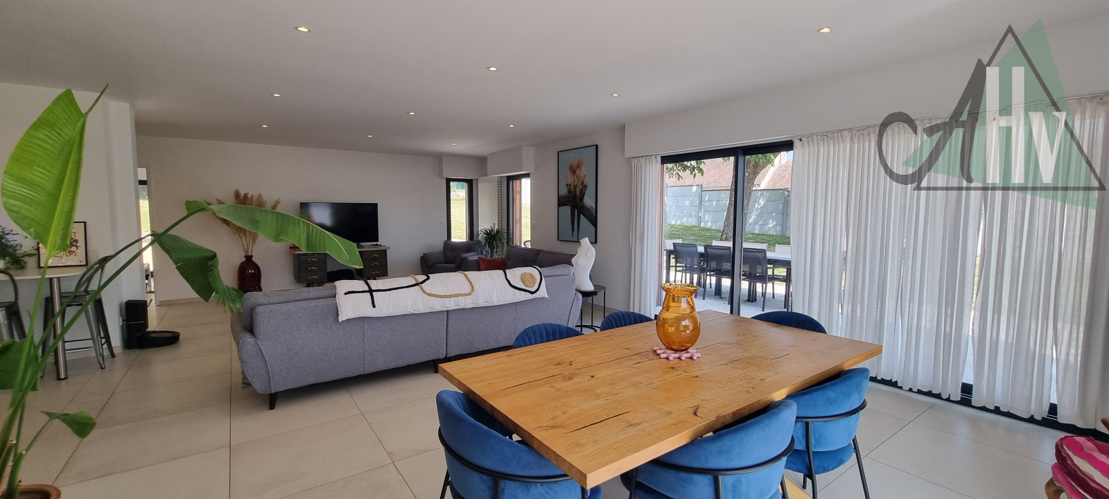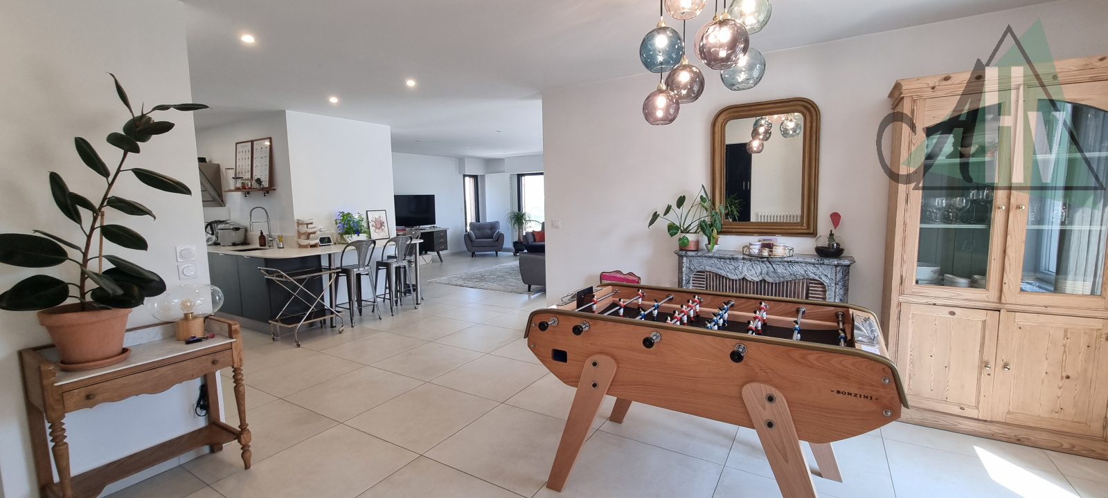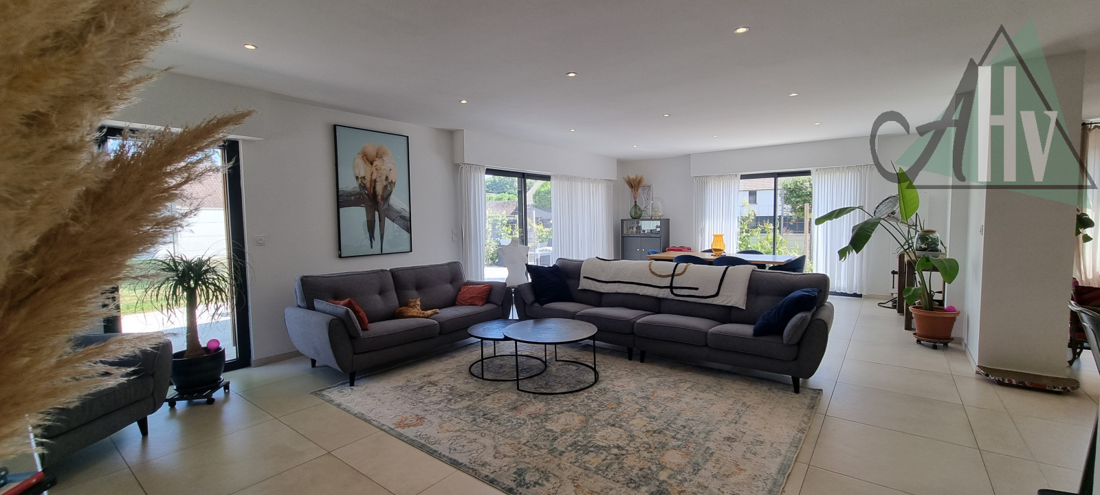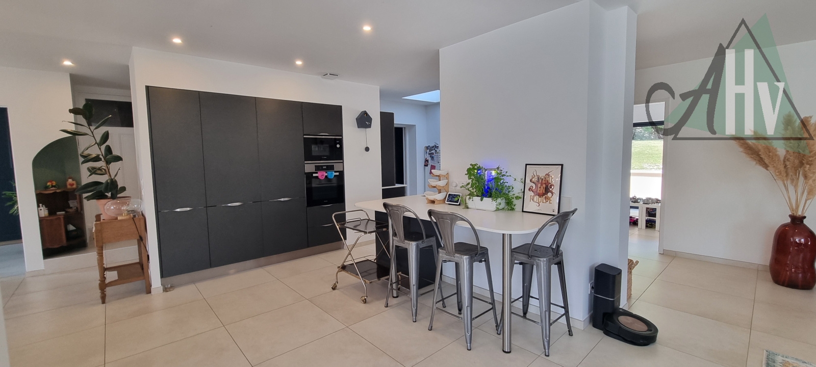 Elle offre une surface habitable généreuse, dont un espace de vie de 90 m² où volumes, lumière naturelle et matériaux de qualité dialoguent harmonieusement.