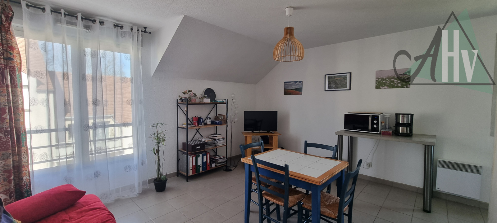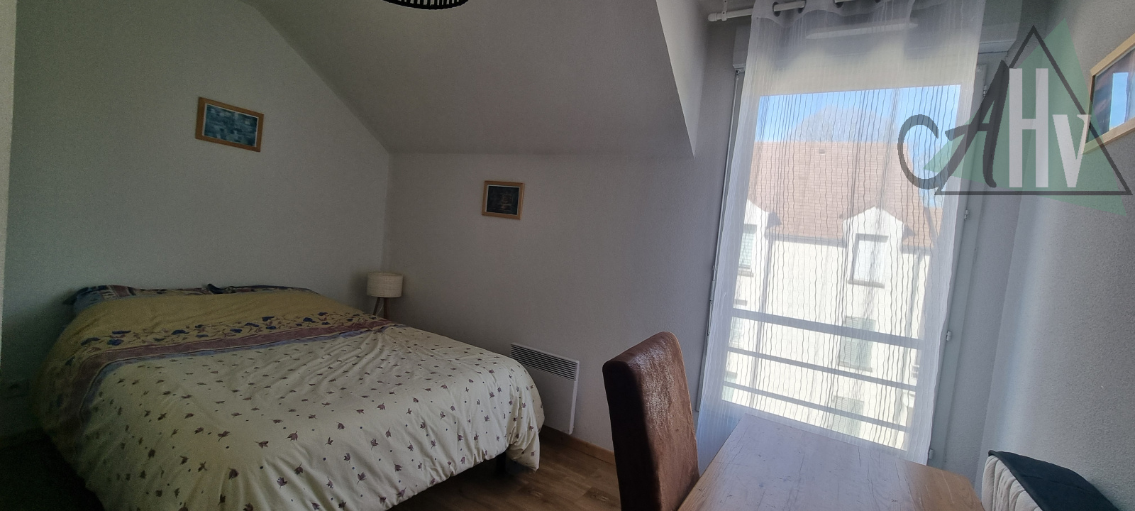 Il se compose d'une entrée, de WC séparés, d'une salle de bains, d'un grand séjour lumineux avec cuisine séparée mais ouverte sur la pièce de vie, d'un cellier, et d'une chambre.