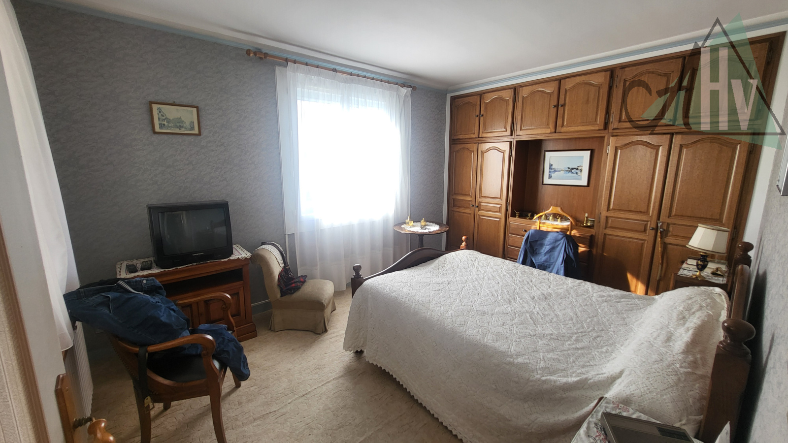 Sous-sol compartimenté : garage avec porte sectionnelle électrique, buanderie-chaufferie, salle d'eau avec wc, cave chambre,