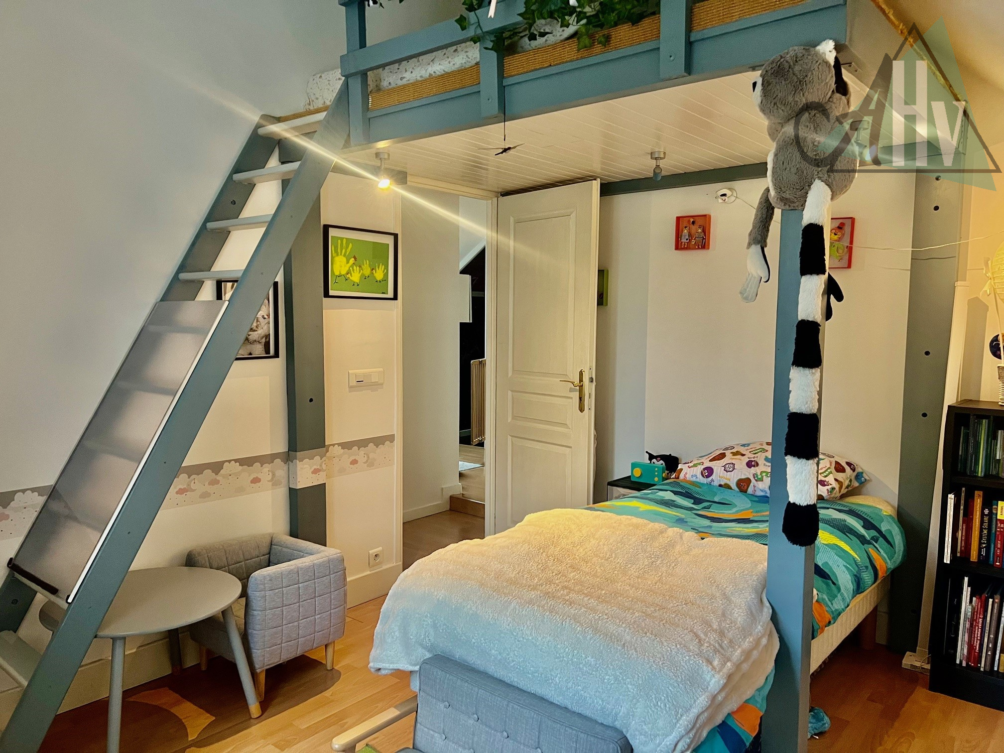 A l'étage : palier, dégagement, WC, chambre, chambre avec mezzanine, salle de bains avec douche,