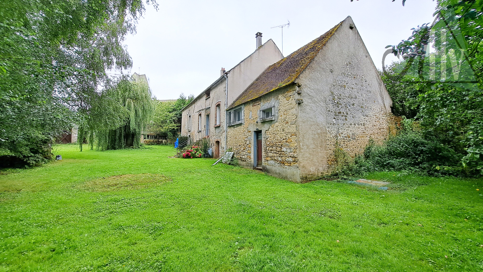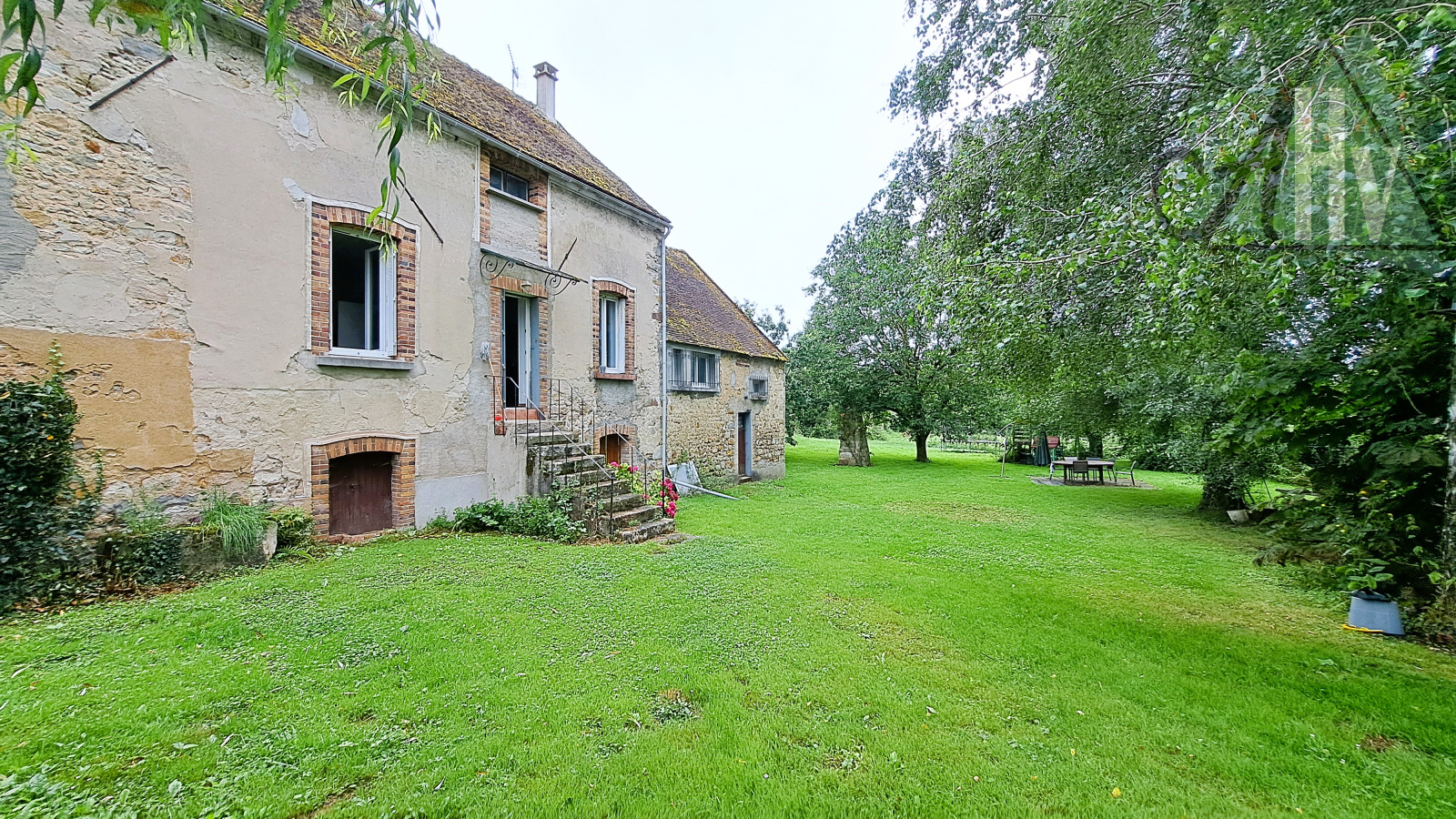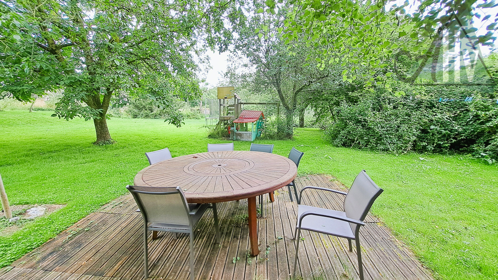 Sur un grand terrain plat et arboré, sans vis-à-vis, d'environ 4 200 m² (dont une grande partie constructible).