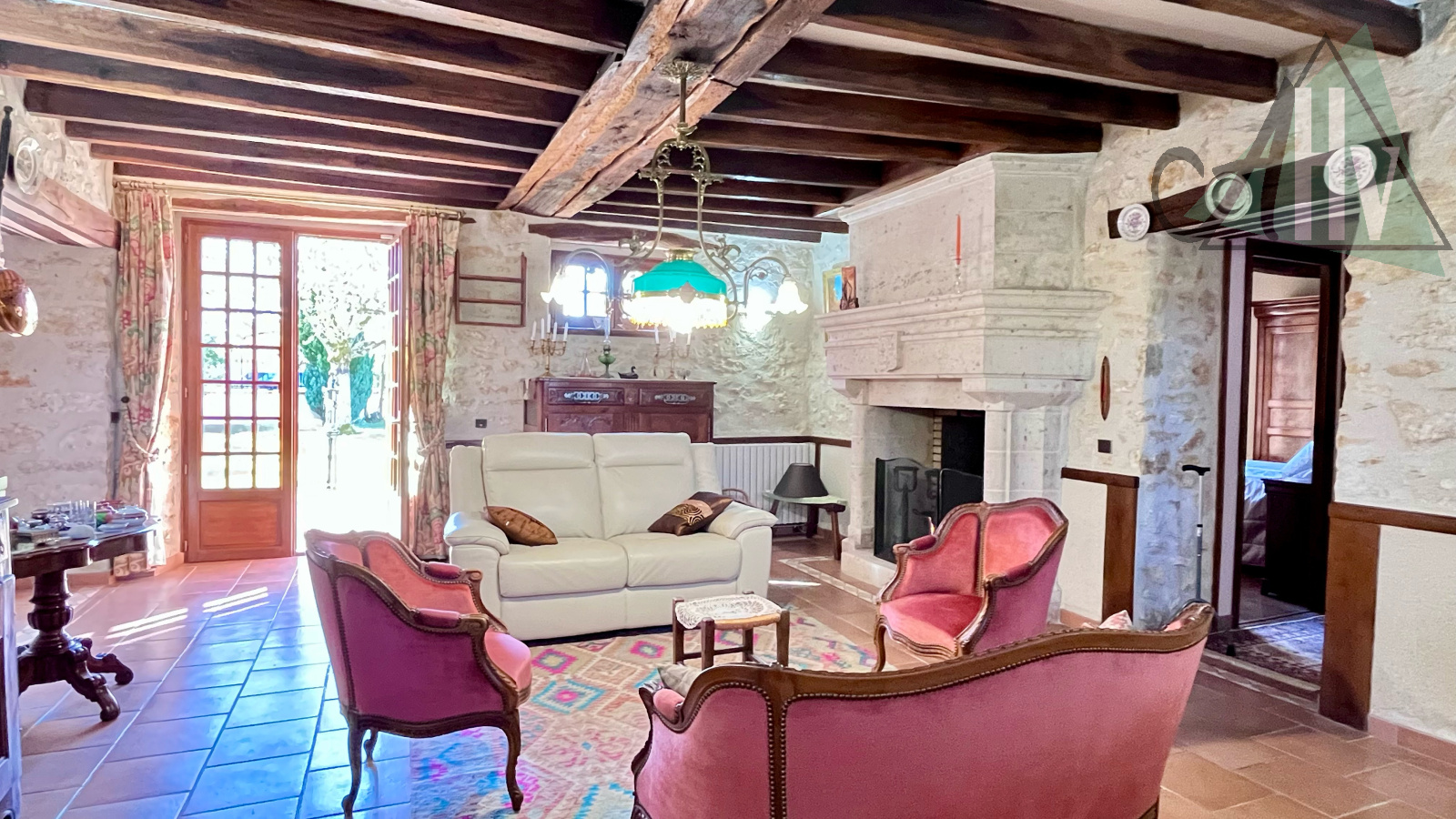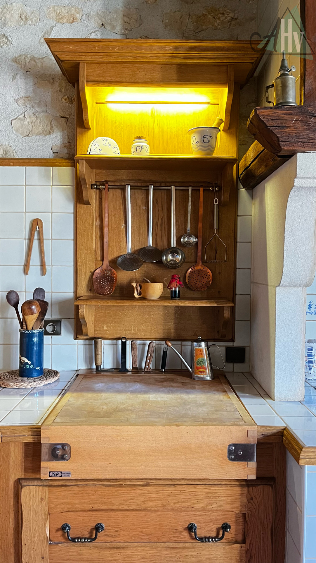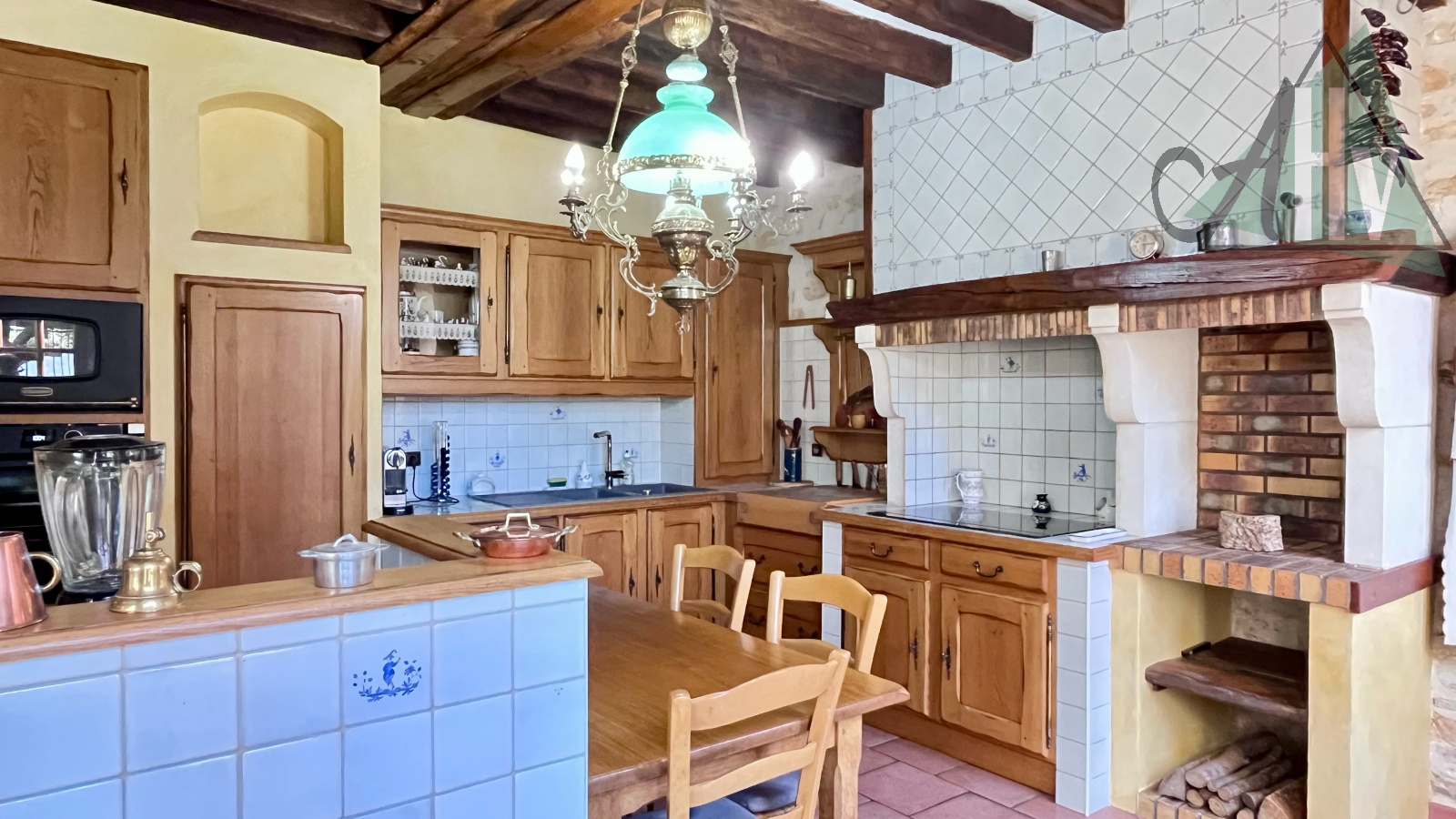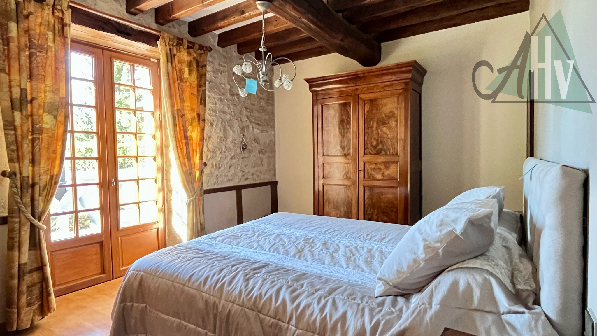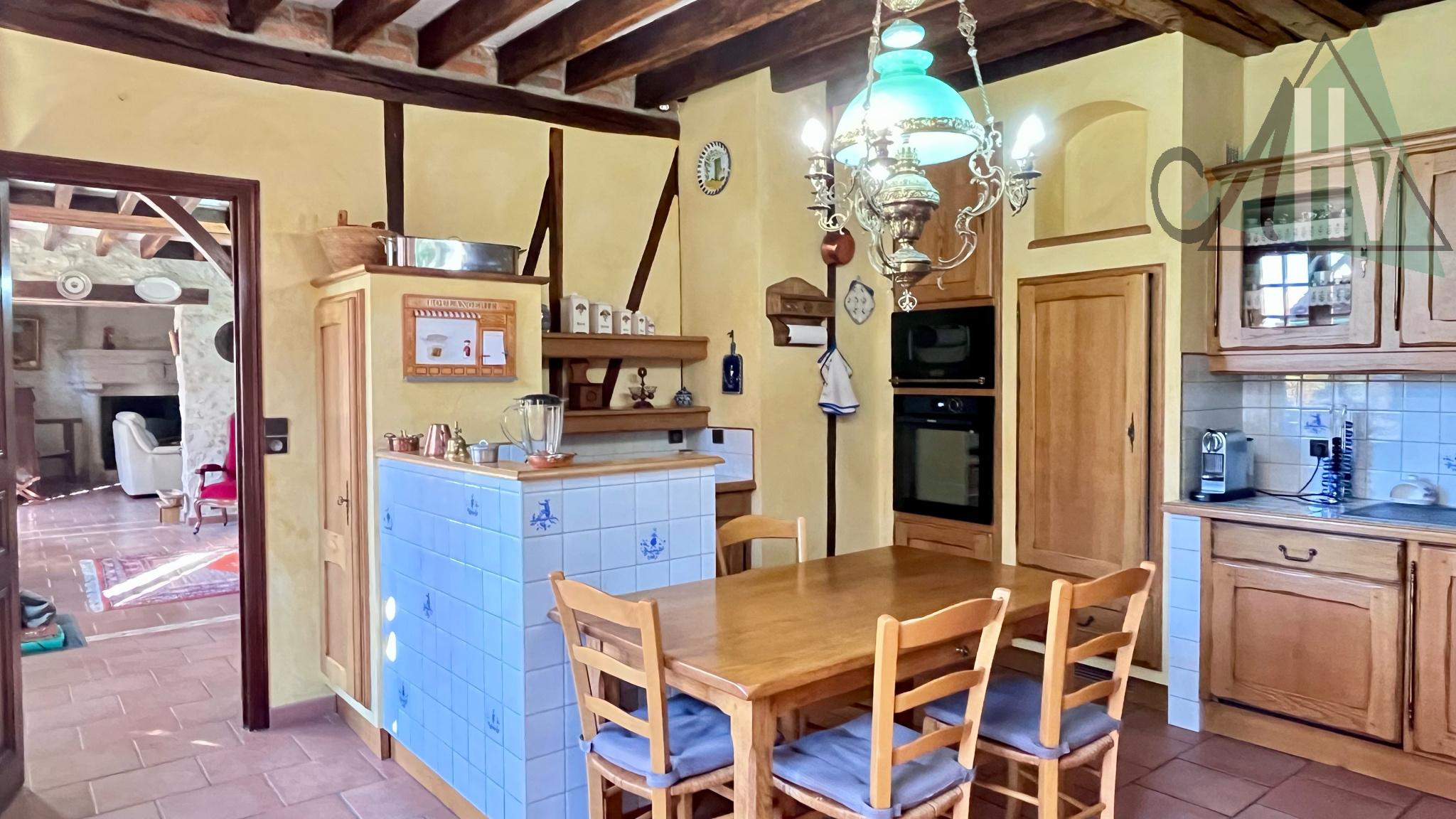 - Au rez-de-chaussée : une entrée donnant, à gauche, sur une salle à manger avec un vrai four à pain et un salon en enfilade avec cheminée ouverte. A droite de l'entrée : une cuisine aménagée traditionnelle offrant un équipement de qualité. Le niveau dispose également d'une chambre, une salle de bains avec douche et un wc offrant ainsi une fonctionnalité de plain-pied ainsi que d'une buanderie et une cave.