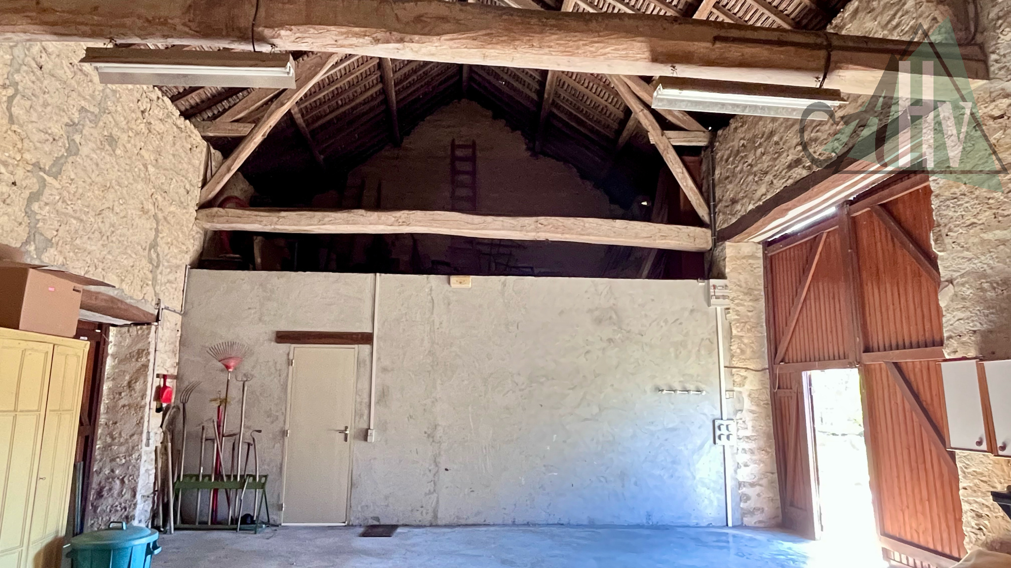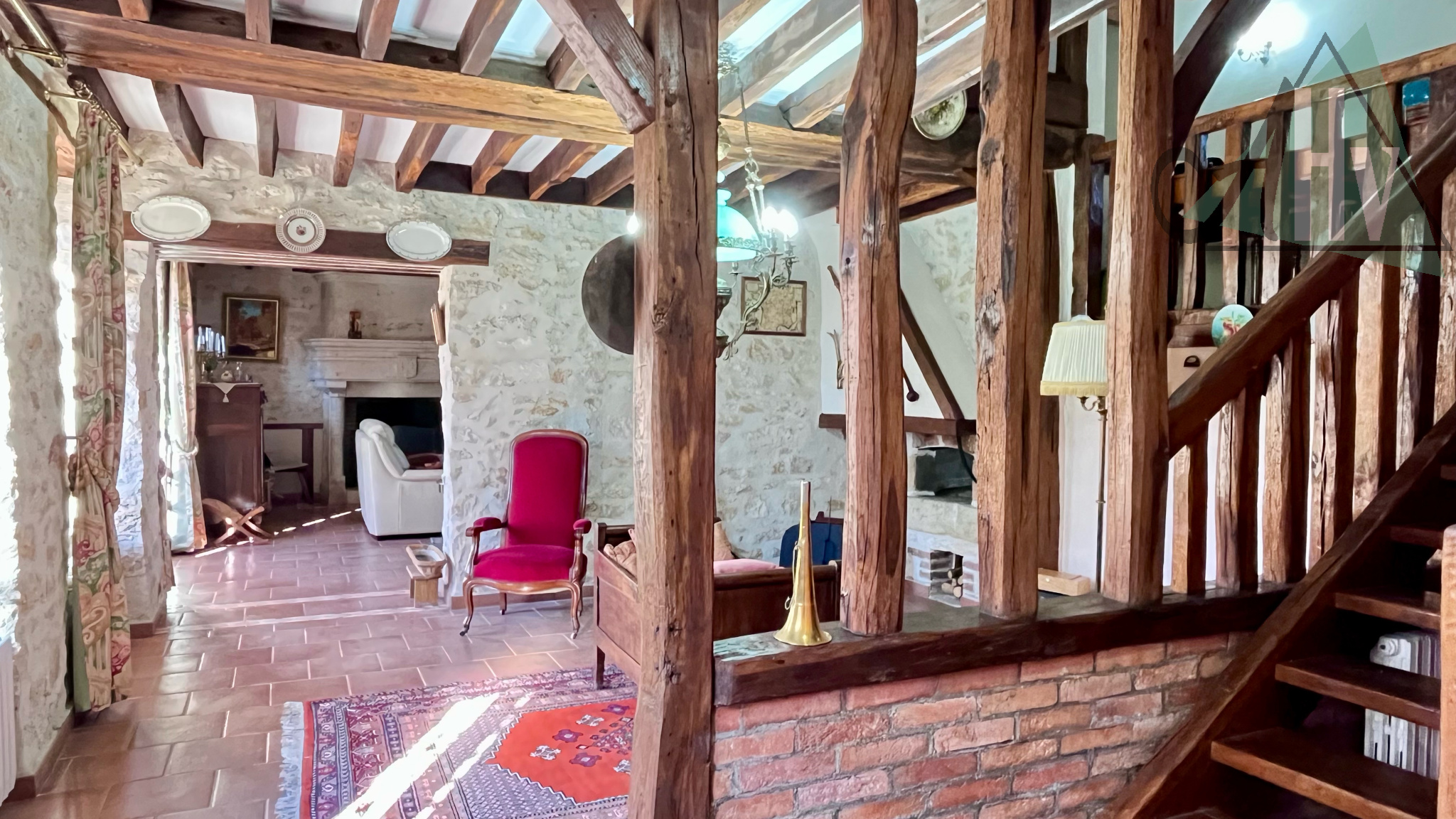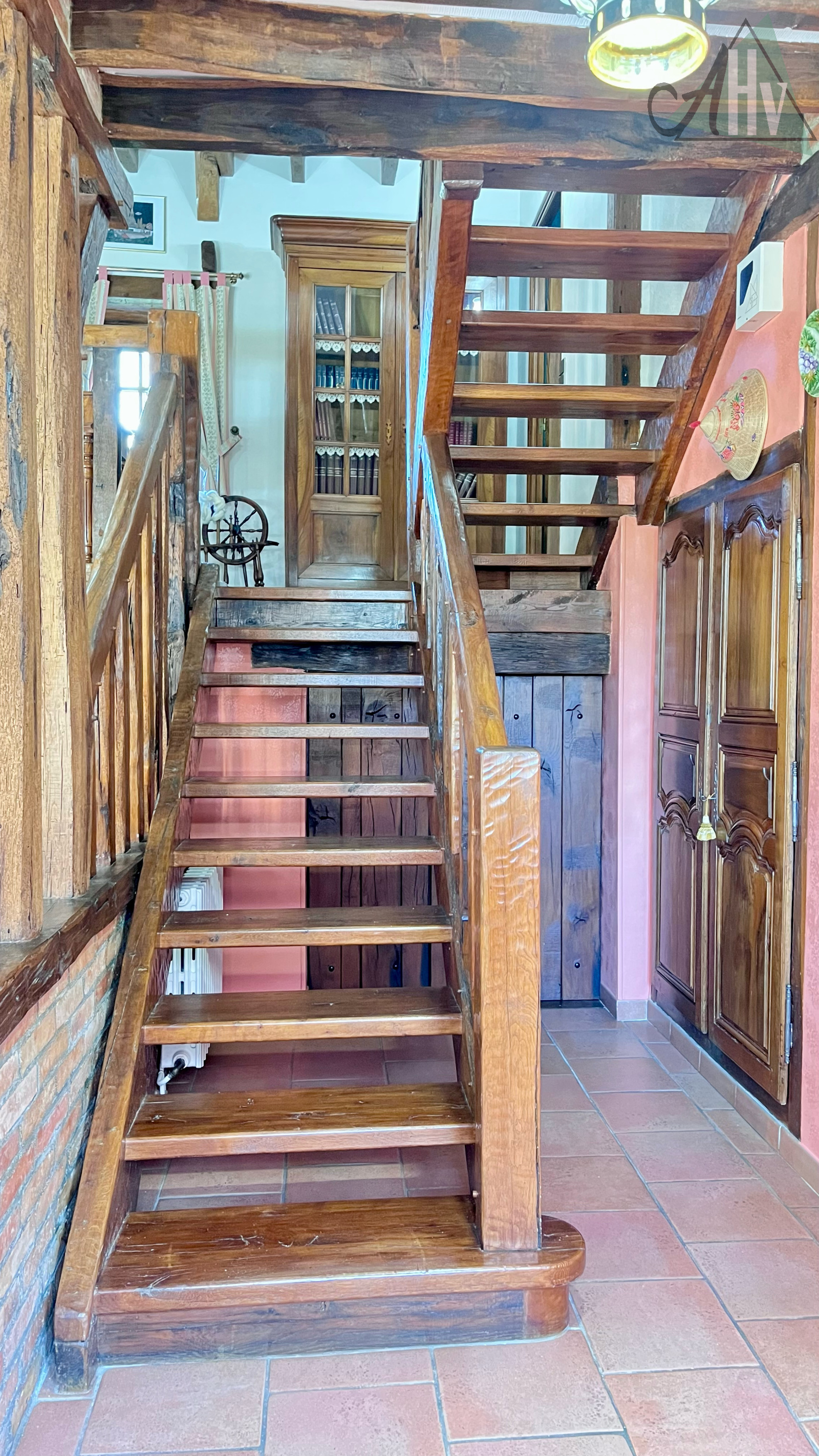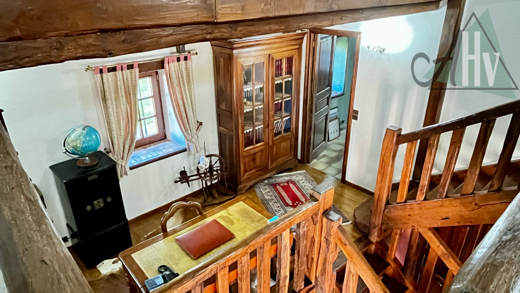 - En demi-étage : un grand palier faisant actuellement office de bureau et une chambre
