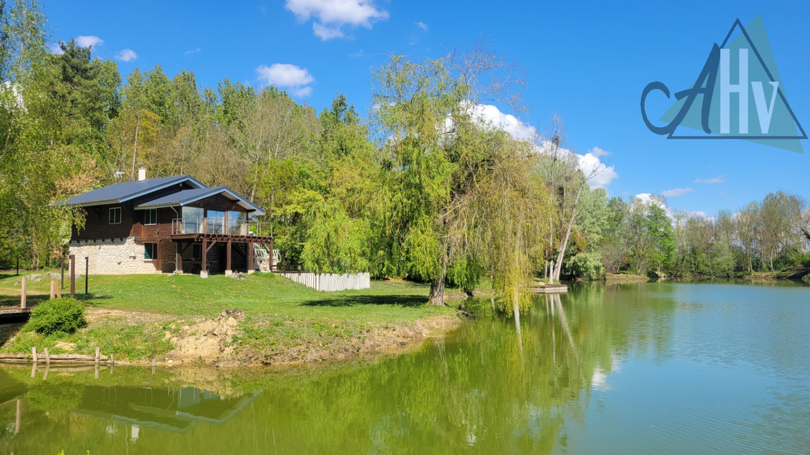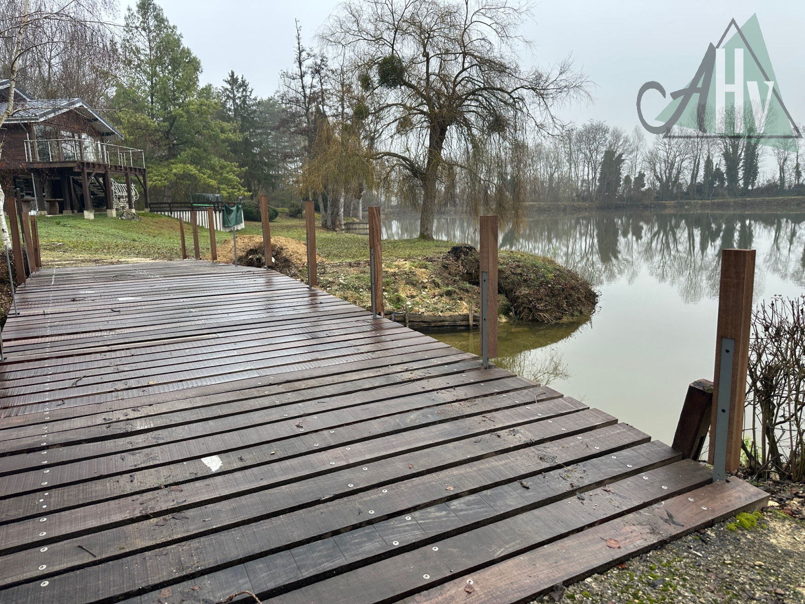 Sur un terrain d'envion 8 hectares dont 4 hectares de plans d'eau, l'agence AHV vous propose une maison d'habitation d'une surface d'environ 138 m² habitable qui comprend :