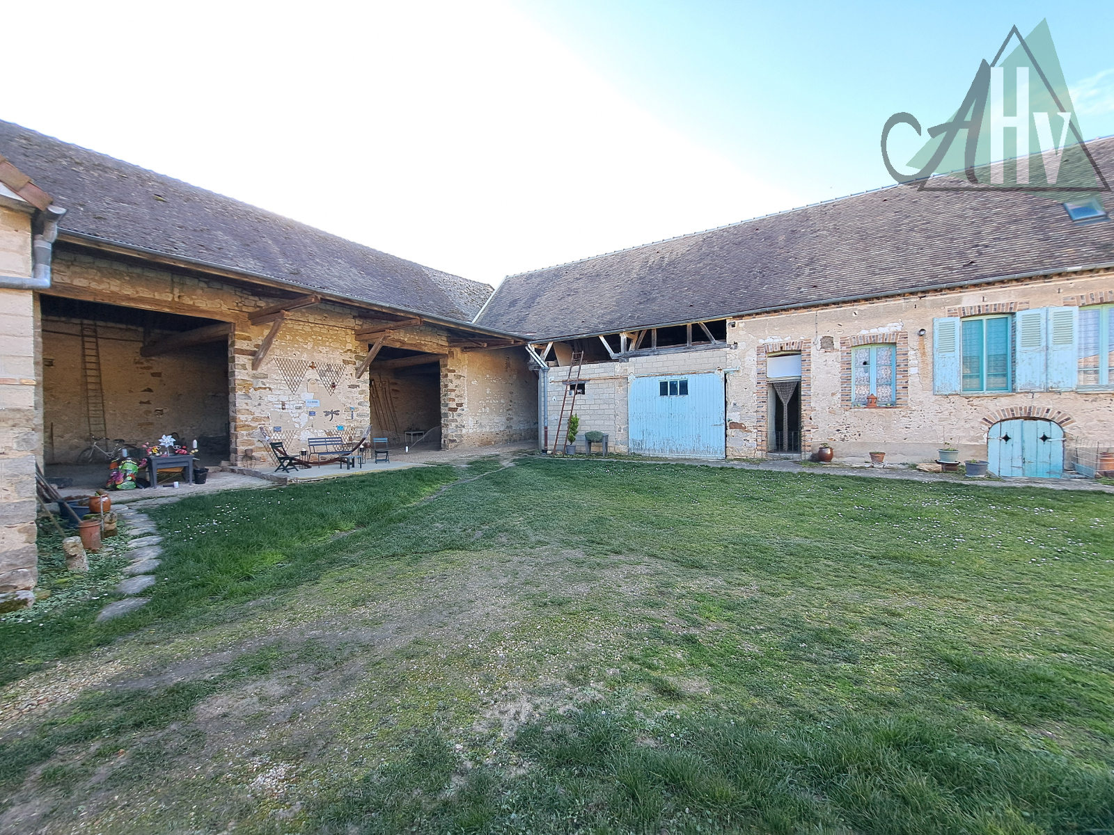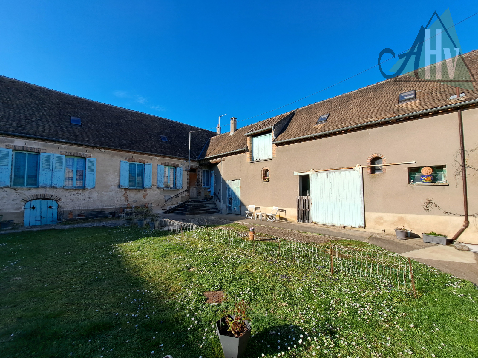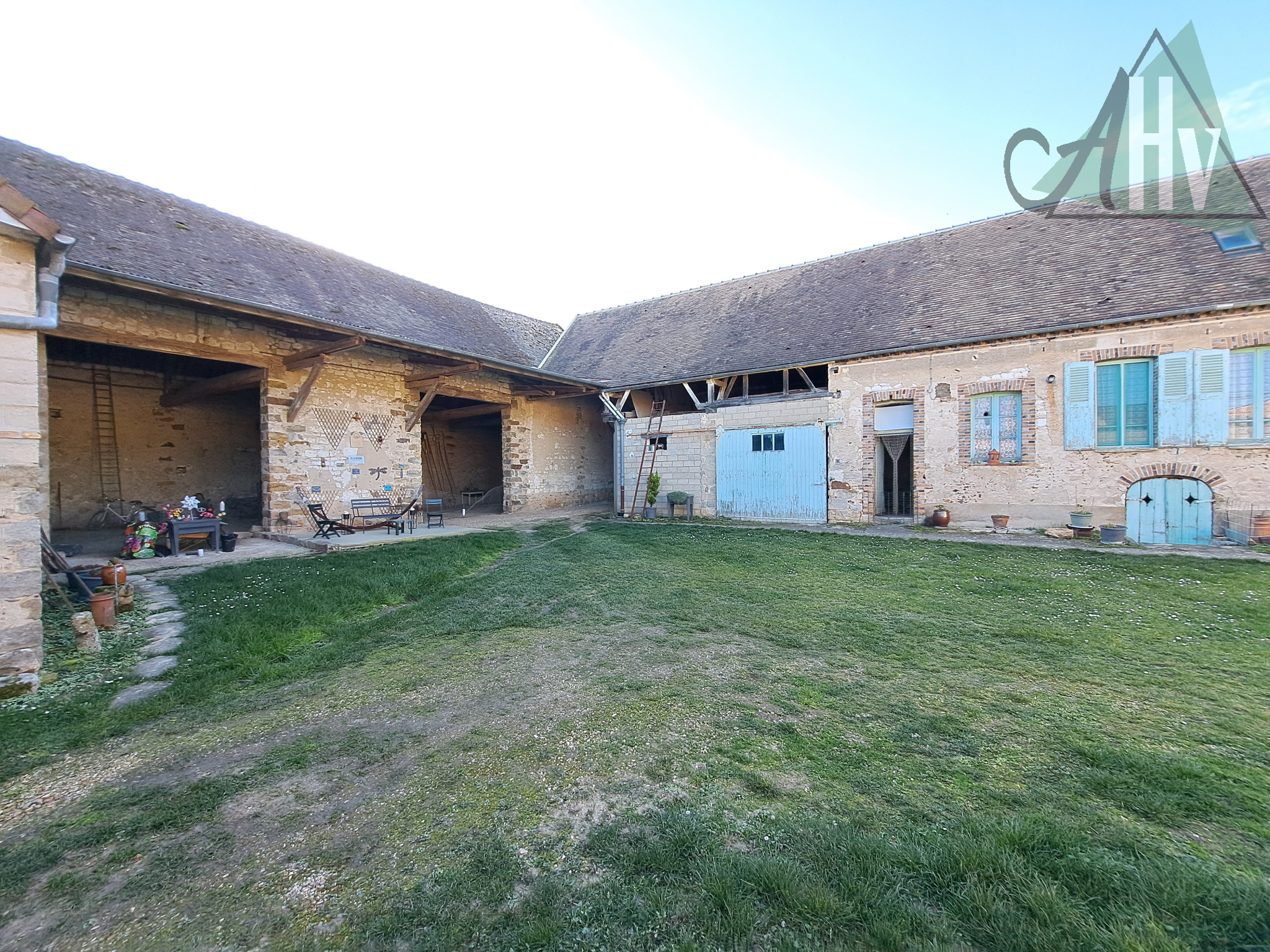 - donnant sur la cour intérieure : Grange de 170 m², étable de 65 m², écurie de 40 m², chaufferie, grande cave voutée, wc extérieurs, débarras…