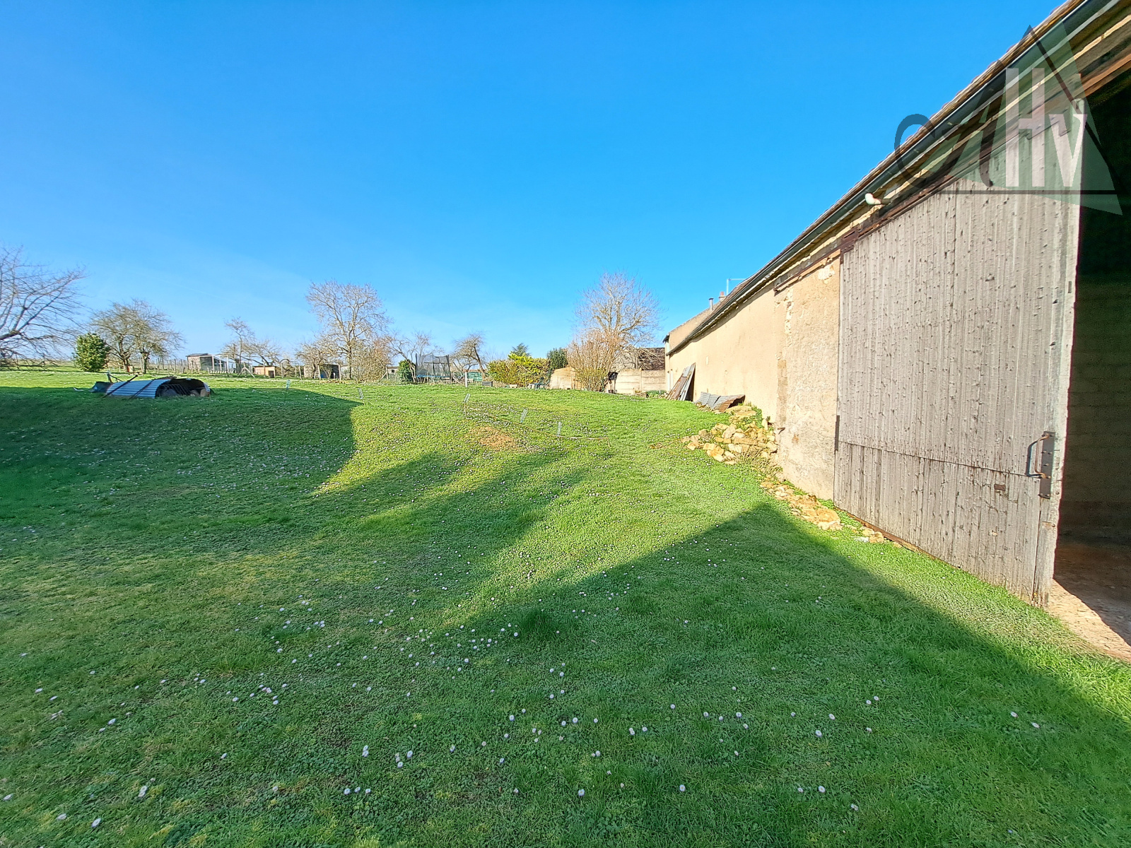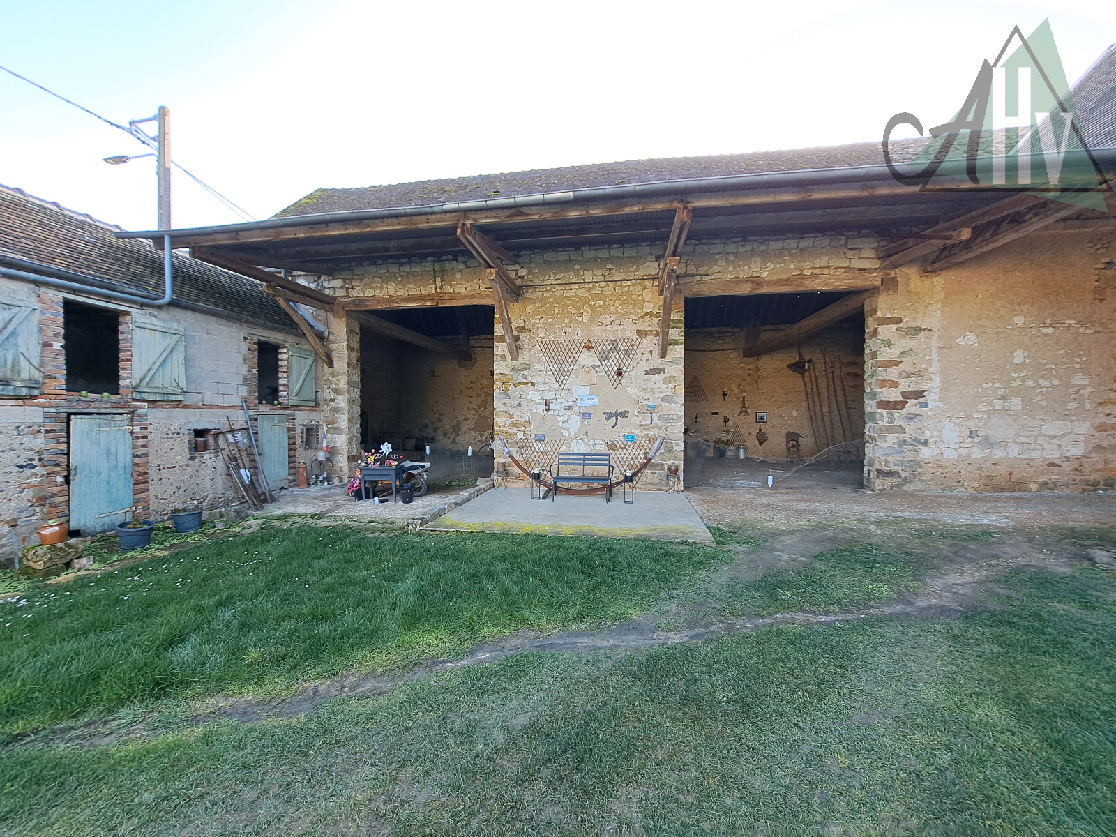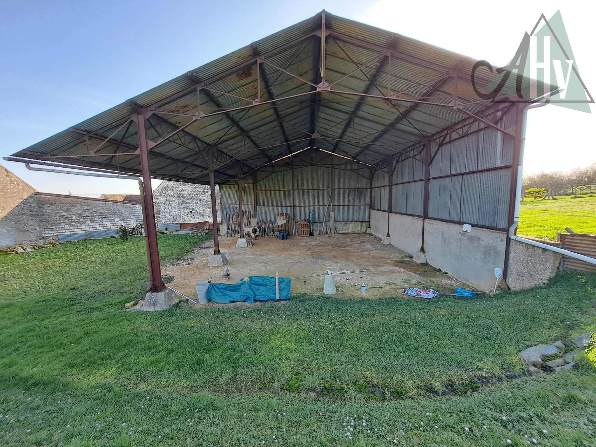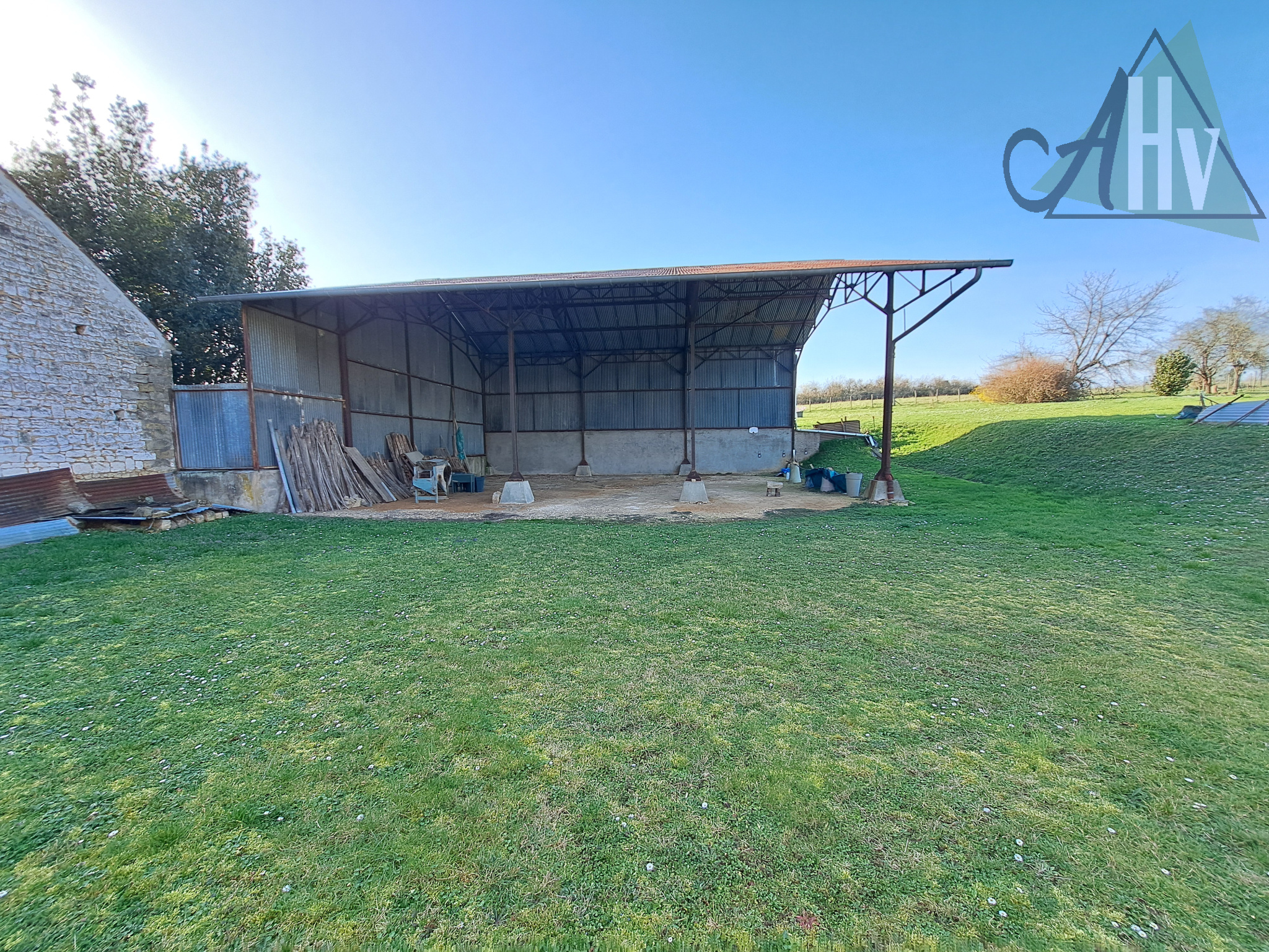 - donnant sur le grand jardin à l'arrière de la ferme : grand hangar ouvert de 180 m².