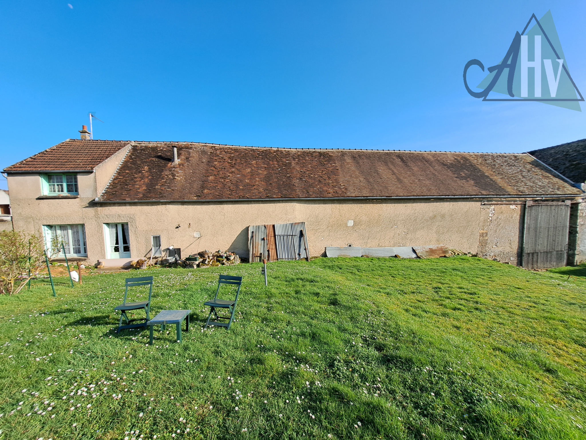 Dans le charmant village de Vinneuf, cette grande ferme de 90 m² (avec un possible agrandissement pour atteindre plus de 250 m² habitables) comprend :