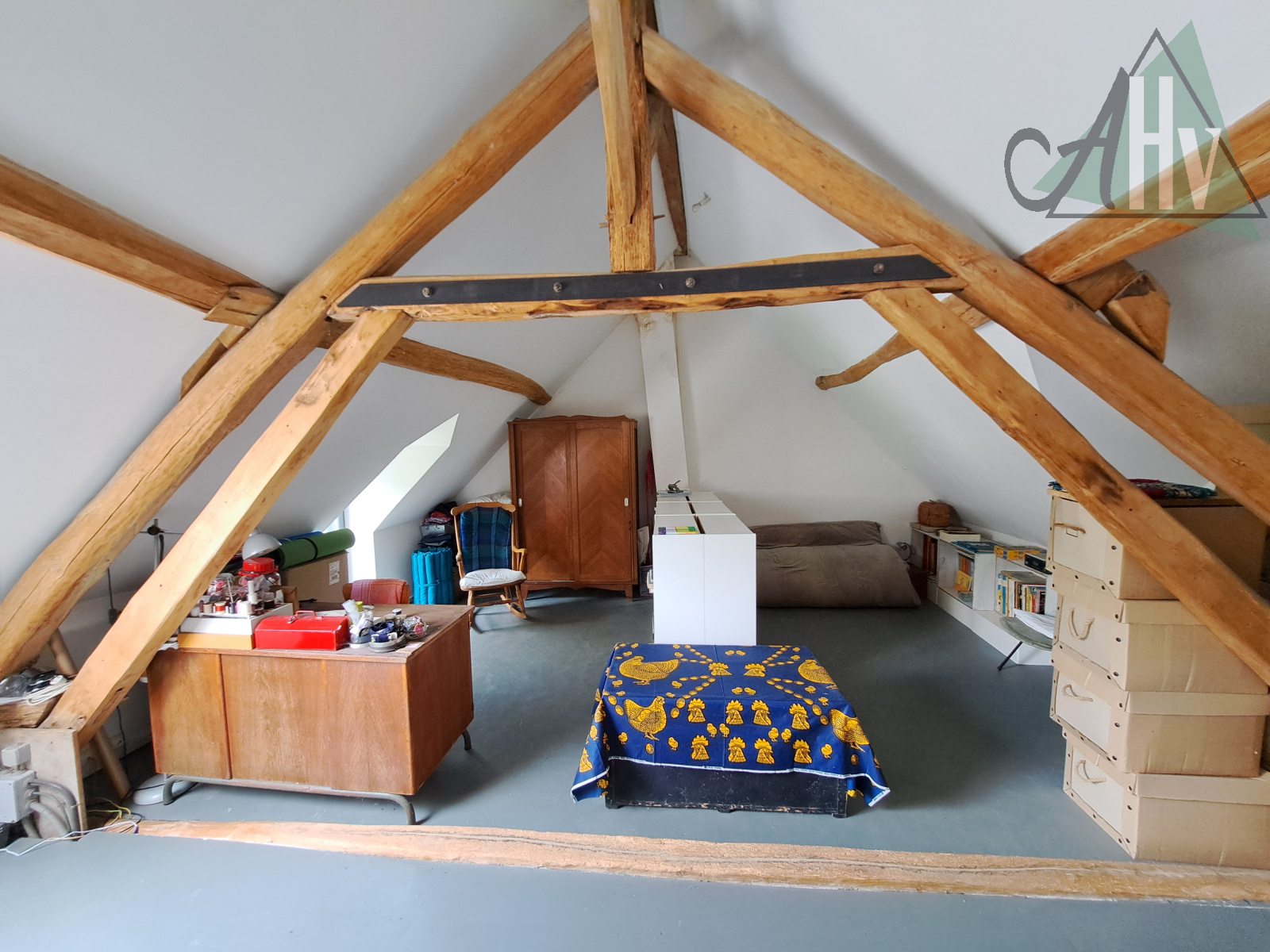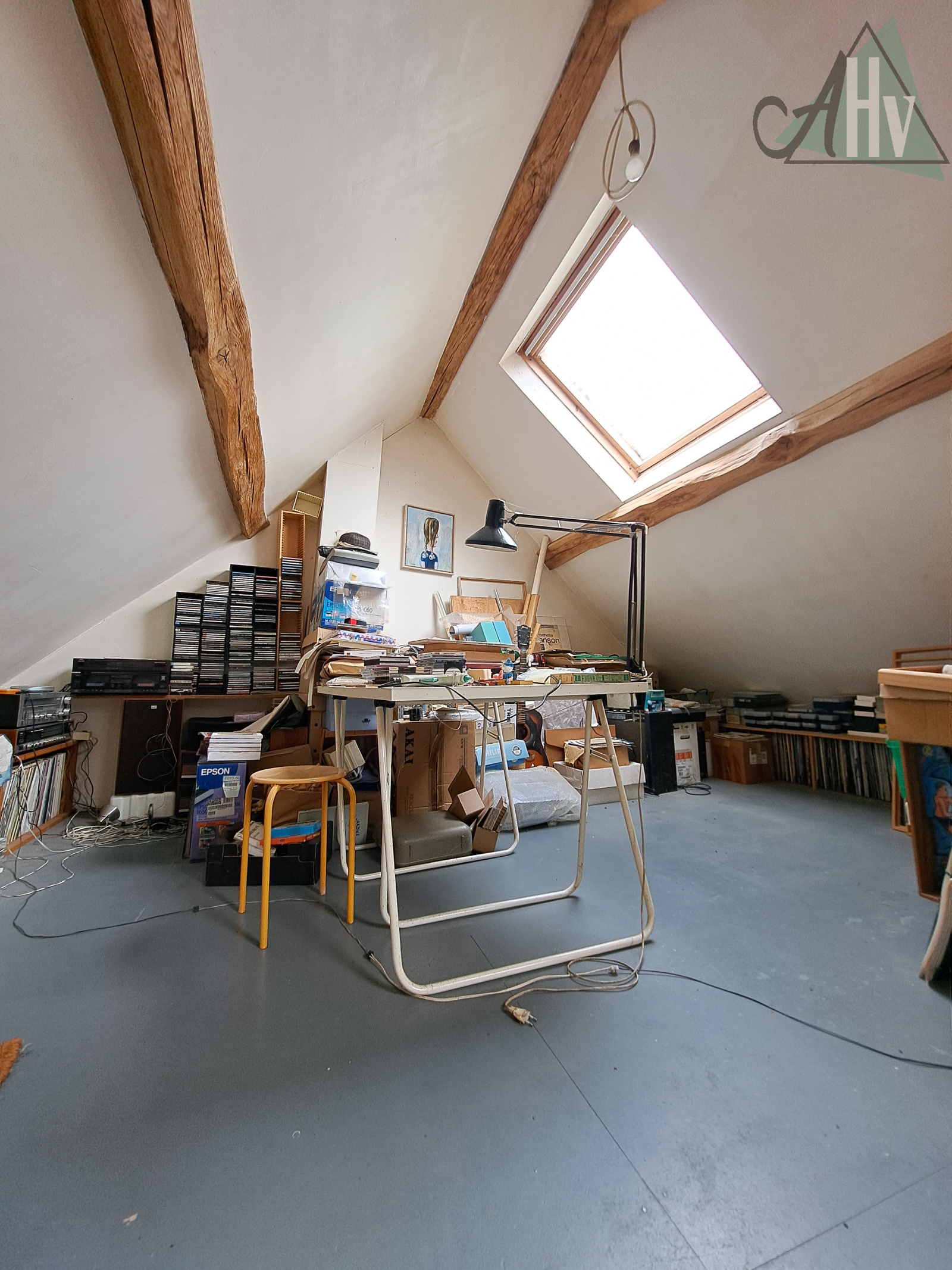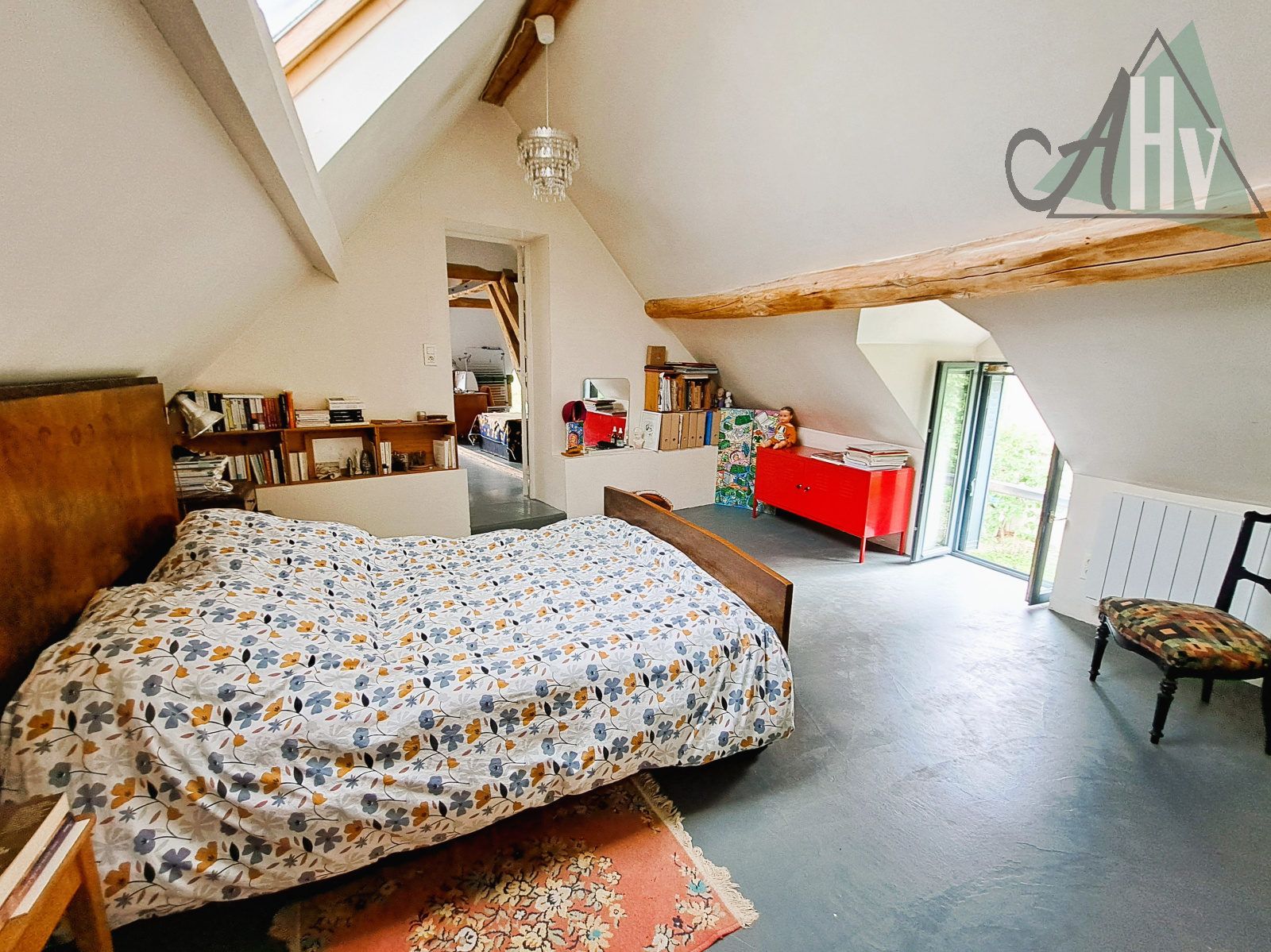 à l'étage : deux chambres (19 m² et 14,5 m²), salle d'eau avec wc, passerelle vers la mezzanine de 9 m².