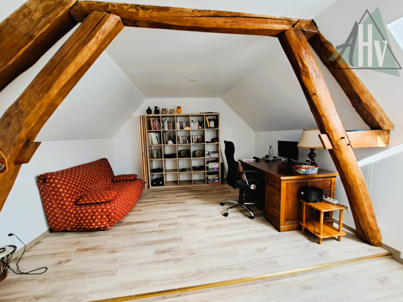 A l'étage : deux grandes chambres (16,5 et 15,5 m²), pièce palière de 20 m² (pouvant servir de bureau ou de chambre d'amis), dégagement.