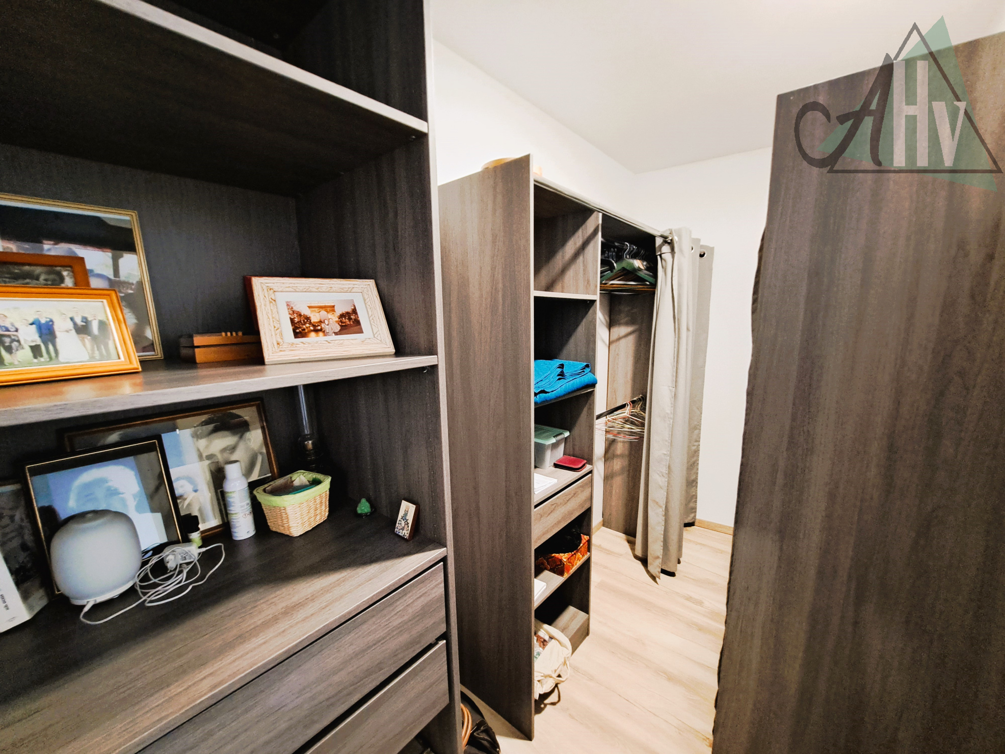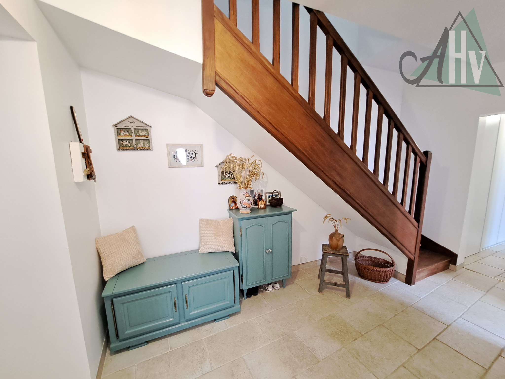 au RDC : entrée, cuisine aménagée équipée de 15 m², beau salon de 26 m² avec poêle à bois Godin, dégagement avec placards, chambre de 15 m² avec dressing de 5 m², salle d'eau de 6 m² avec douche à l'italienne, wc séparés, chaufferie / cellier de 7,5 m².