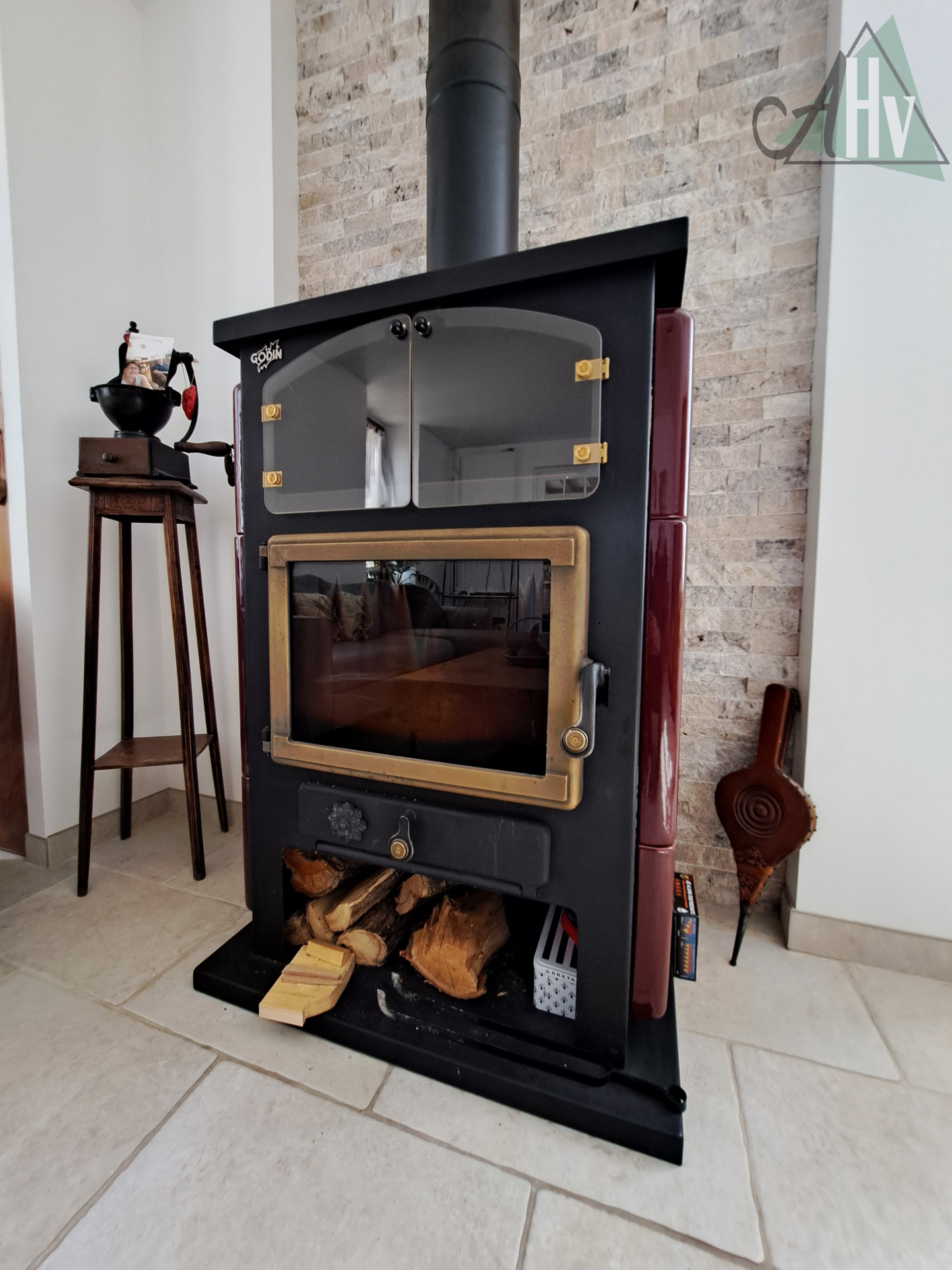Excellente isolation (DPE C). Chauffage pompe à chaleur (neuve) et bois. Double vitrage alu. Tout à l'égout.