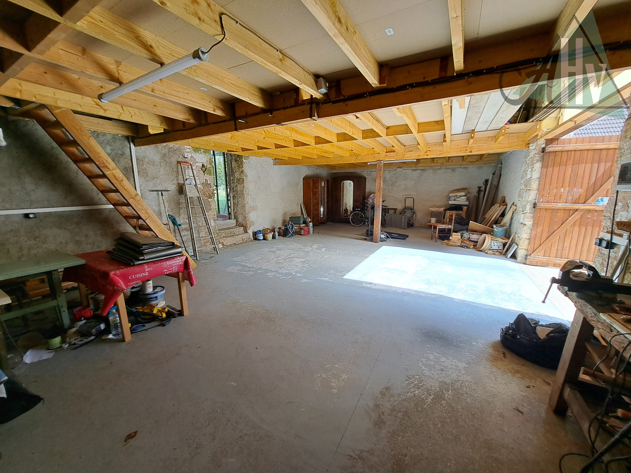 Attenant à la maison, une belle grange d'environ 82 m² avec étage propose un bel espace de parking et de stockage. Abris ouvert à l'arrière.