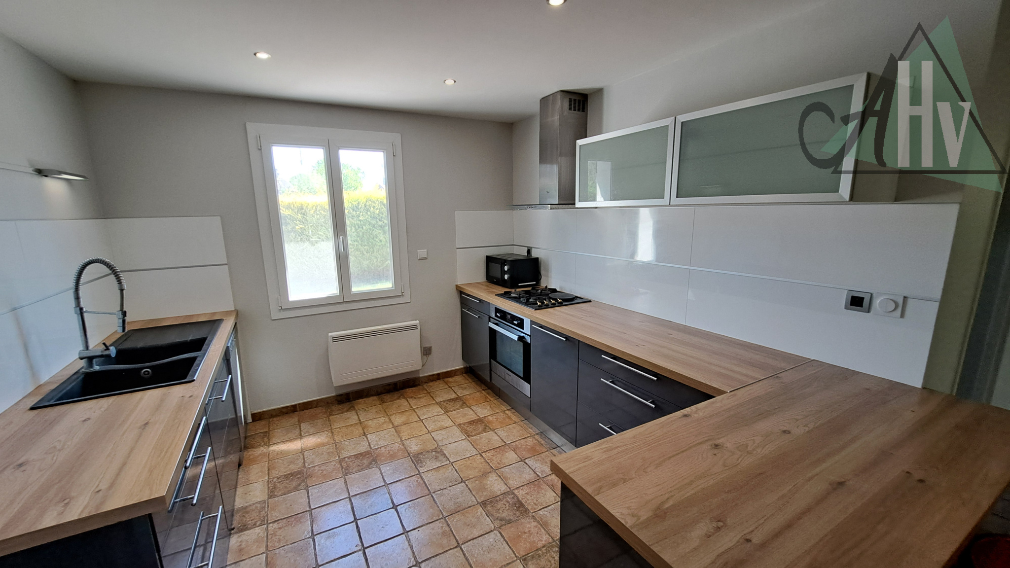 Sur un terrain arboré et clos de 1100 m² avec une jolie terrasse bois et piscine hors sol chauffée (PAC). Portail automatique.