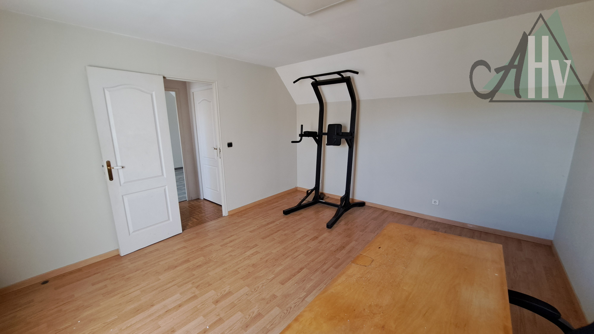 À l'étage : pallier, deux belles chambres (16,8 et 13,7 m²) et débarras.