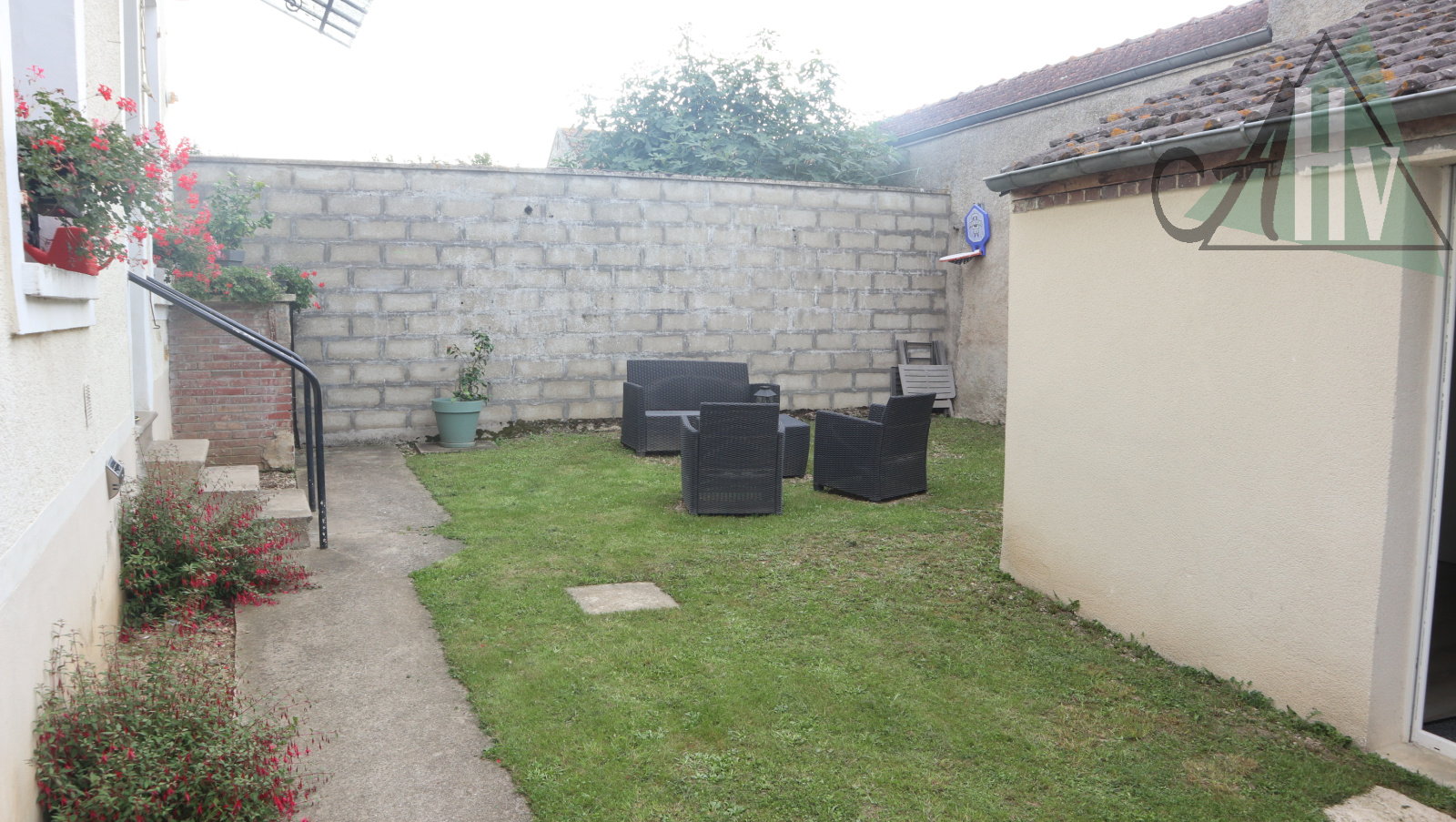 Sur un terrain entièrement clos et sans vis-à-vis d'environ 150 m² avec un petit jardin.