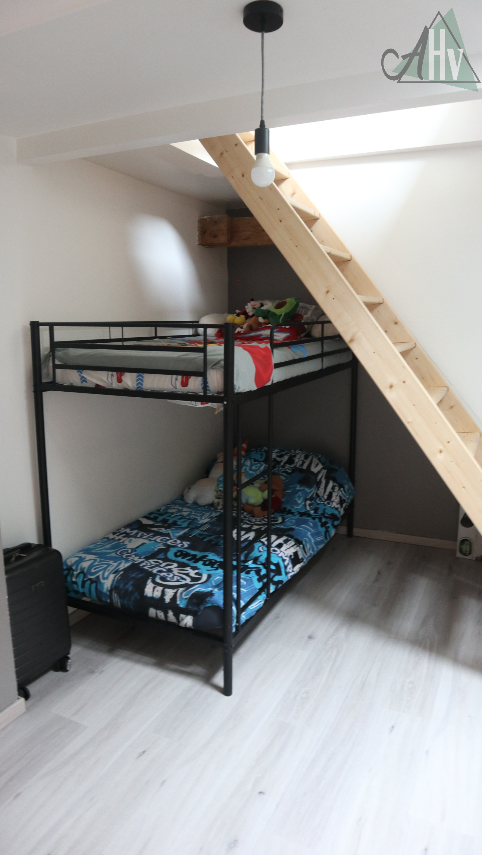 La maison, rénovée avec goût, comprend : au RDC : une entrée sur cuisine aménagée de 12,5 m², un grand salon / salle à manger de 32,5 m² avec un poële à granulés récent, des wc ; à l'étage : couloir desservant une chambre de 18 m² avec dressing, une chambre de 9 m² avec mezzanine, une salle d'eau (douche à l'italienne), des wc, un grenier de stockage.