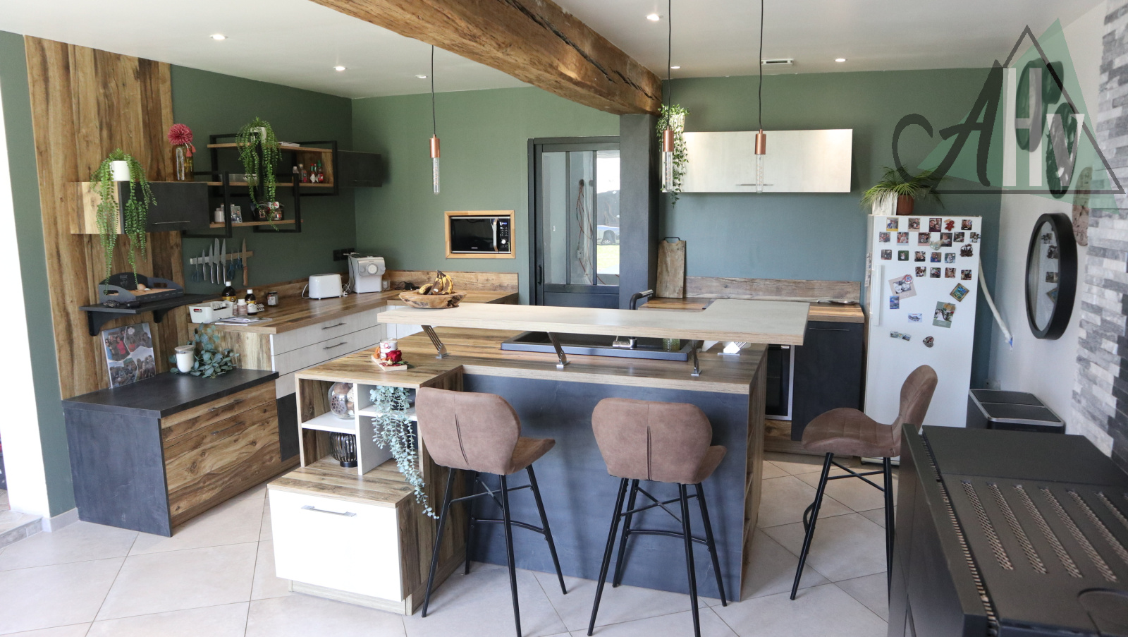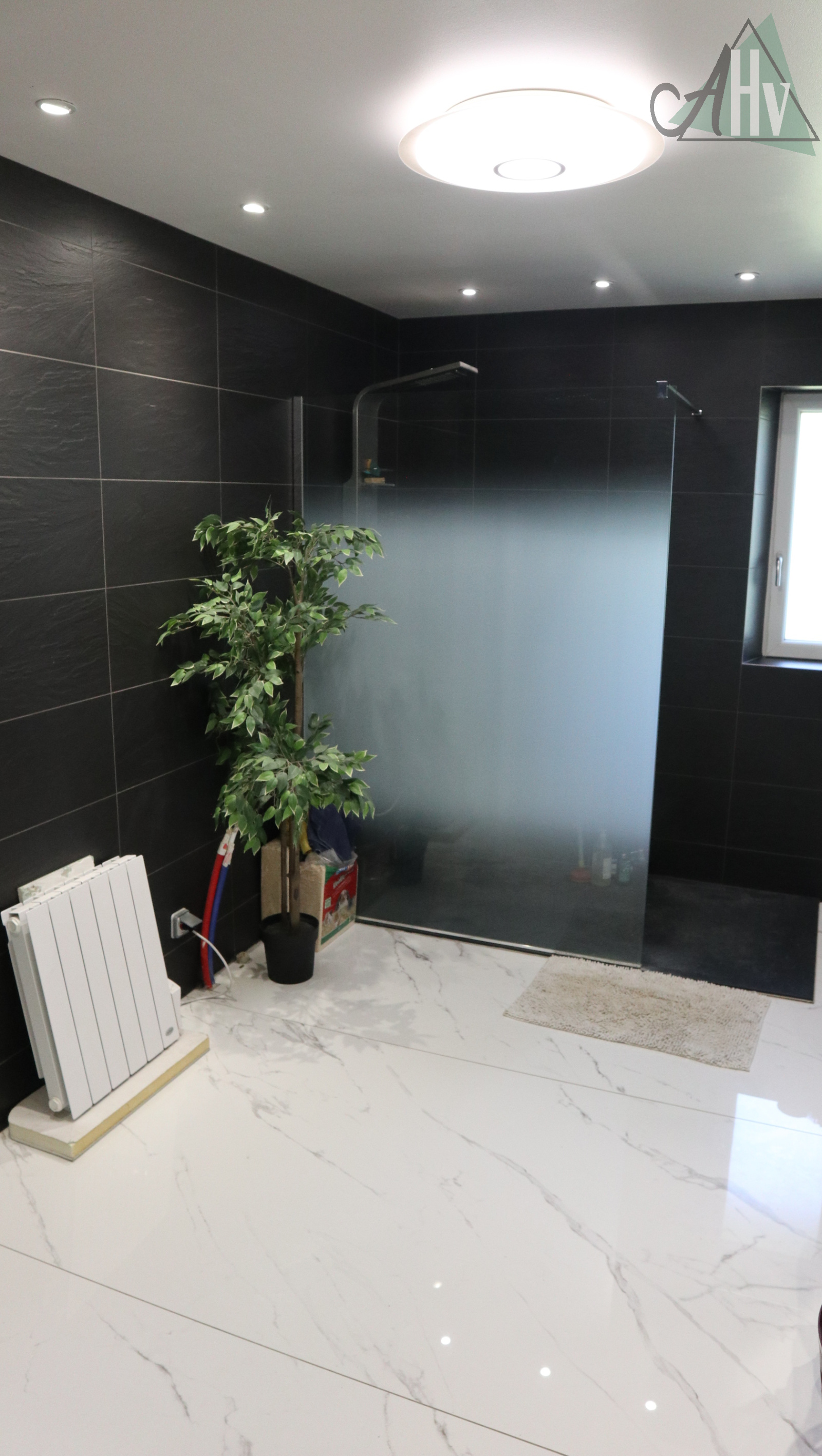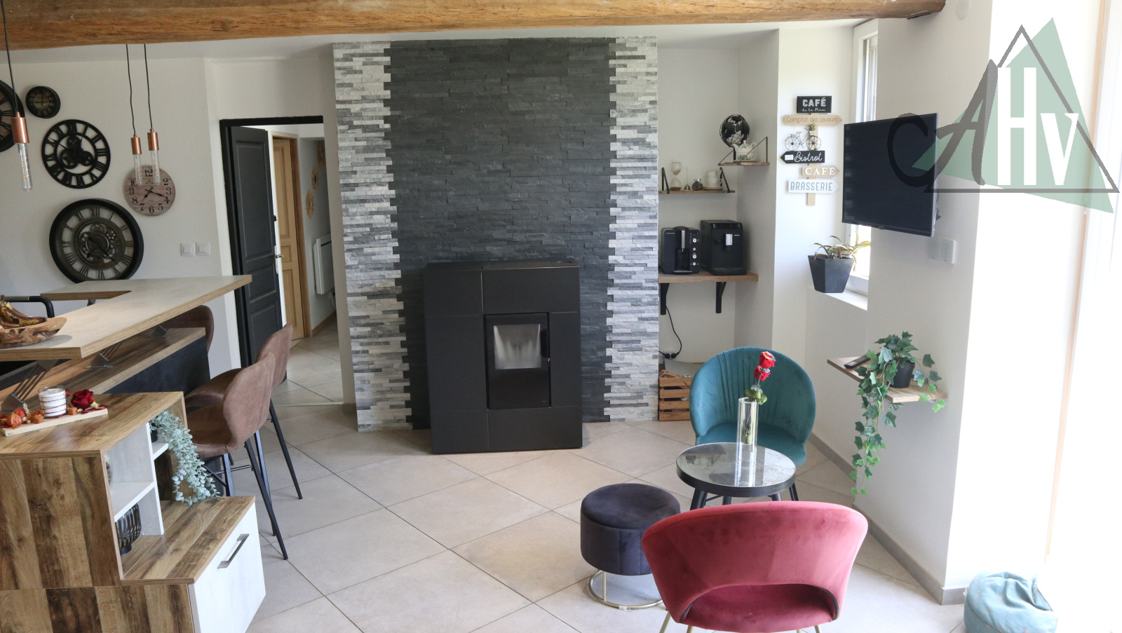 Chauffage poêle à granulés et poêle à bois + électrique. Assainissement individuel neuf. Double vitrage.