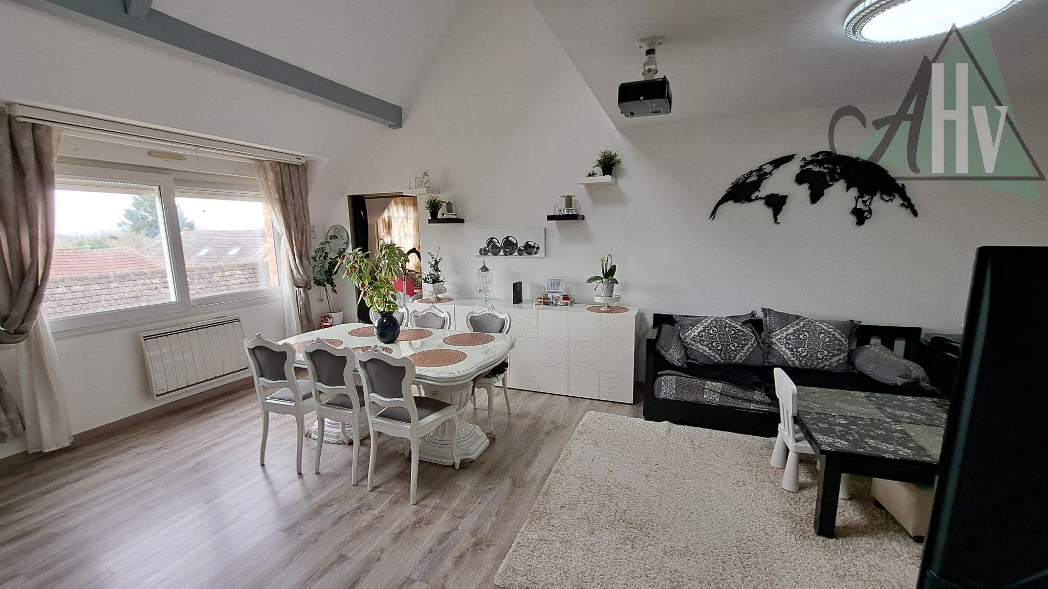 Chauffage électrique. Double vitrage PVC. Très bonne isolation (DPE C). Volets roulants. VMC.