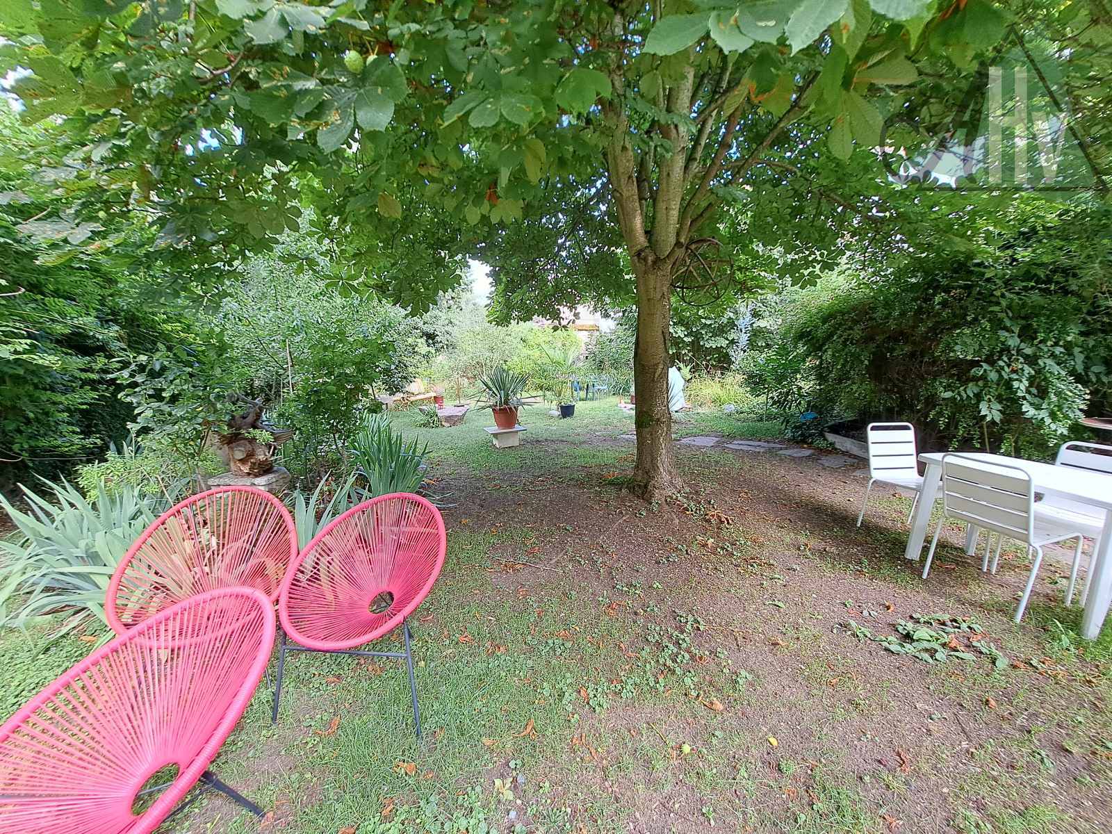 Le terrain, d'environ 815 m² offre accès à un charmant jardin clos de murs, arboré, avec une grande terrasse d'environ 130 m². Portail sur la rue permettant de garer plusieurs véhicules.