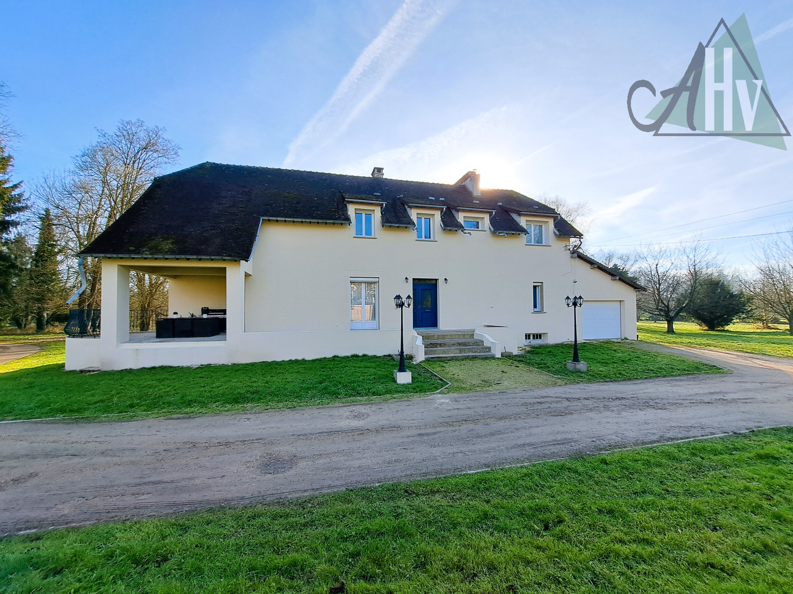 Sur un terrain plat, arboré, d'environ 1 hectare, avec terrain de pétanque, belles terrasses (dont une sur-élevée couverte), bordé d'un ru (idéal pour la pêche).