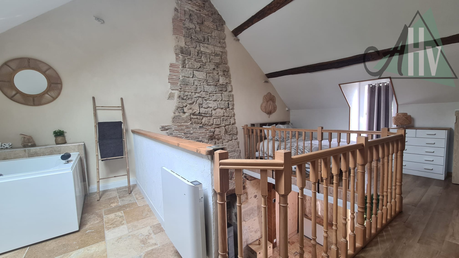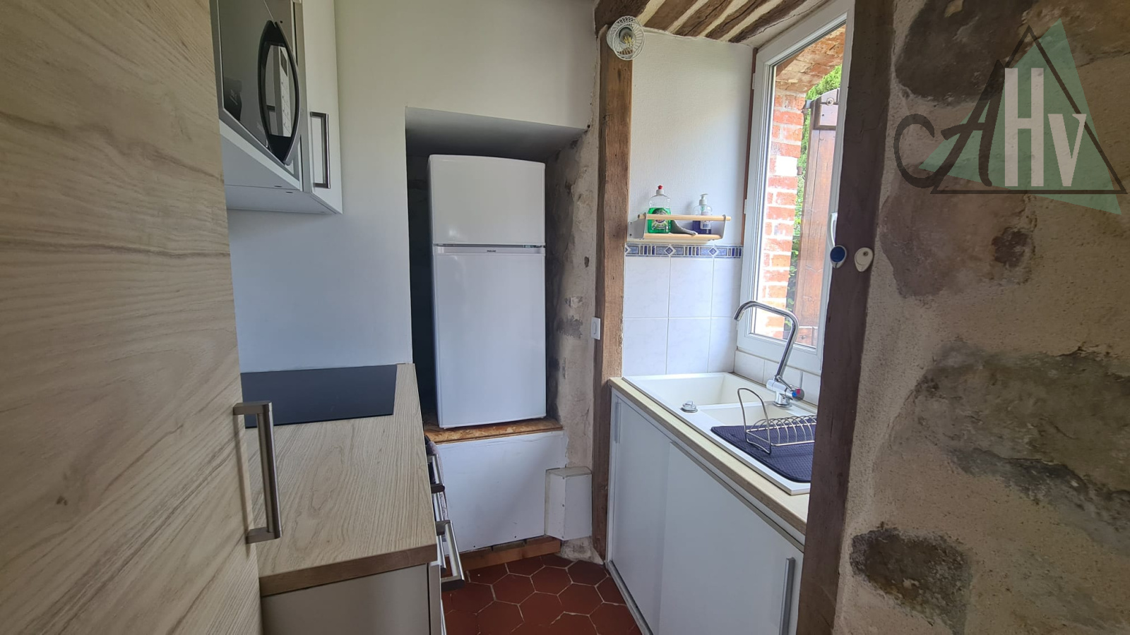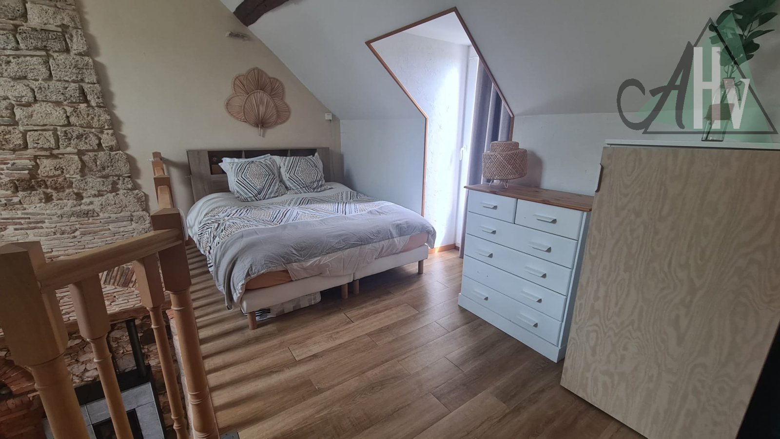 Cette maison de charme de 51m², entièrement meublée, offre une pièce de vie lumineuse avec poêle à granulés, une cuisine équipée, une salle d'eau et un WC. En mezzanine, une salle de bain en suite (espace nuit avec spa).