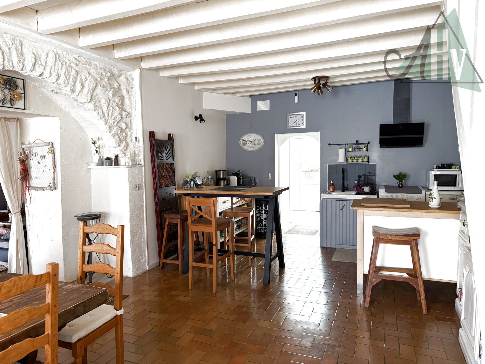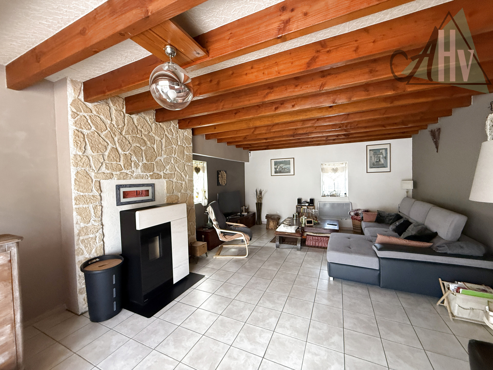 Elle se compose d’une belle entrée, d’une salle à manger, d’une cuisine, et d’un salon chaleureux avec poêle à granulés.