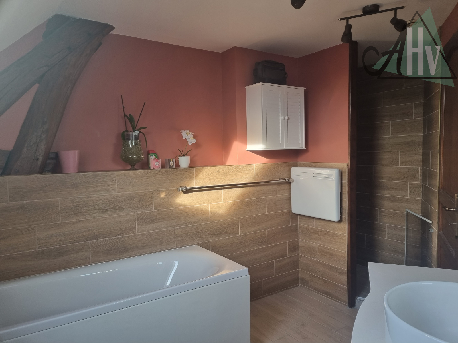 Au 1er étage, salle de bain avec douche, WC séparés et 3 chambres (environ 13 m², 14 m² et 17 m²).