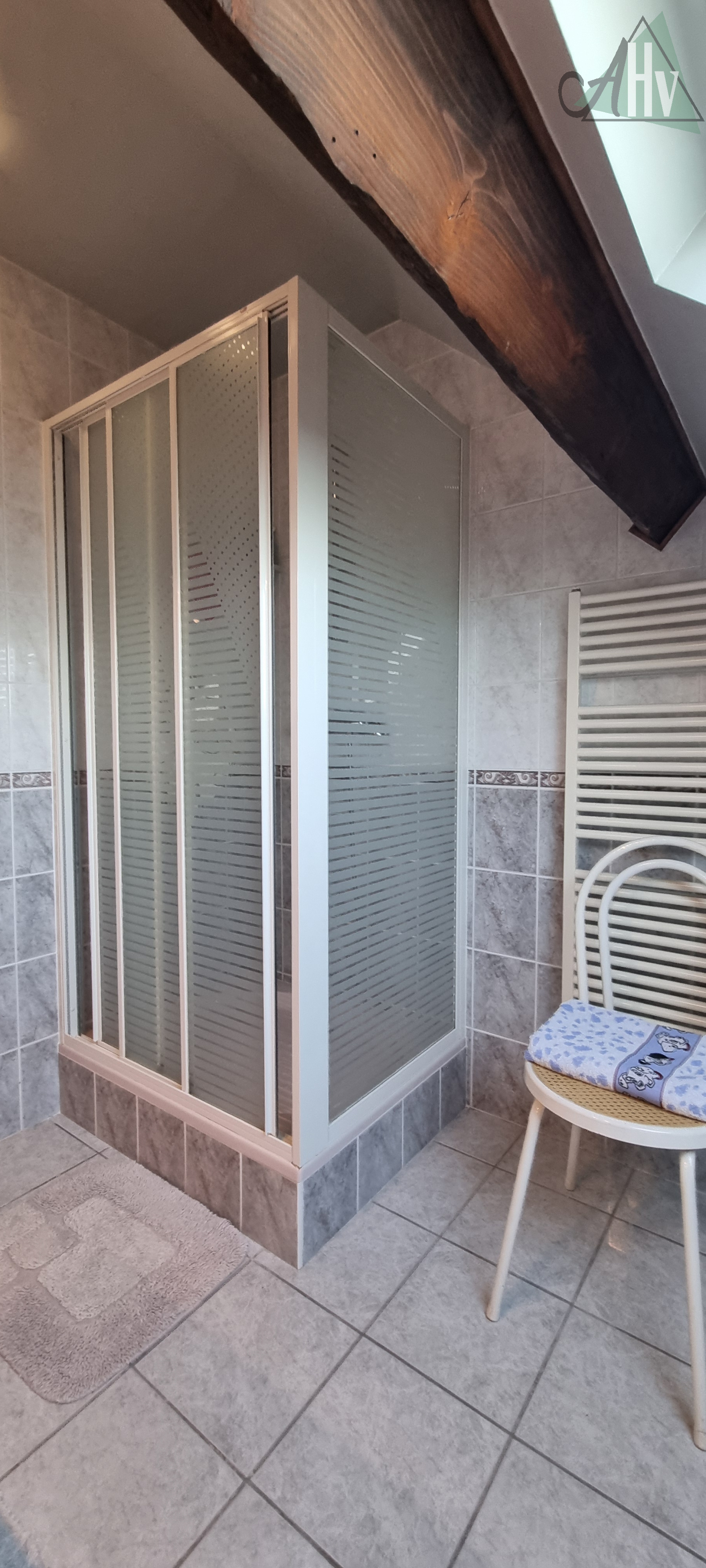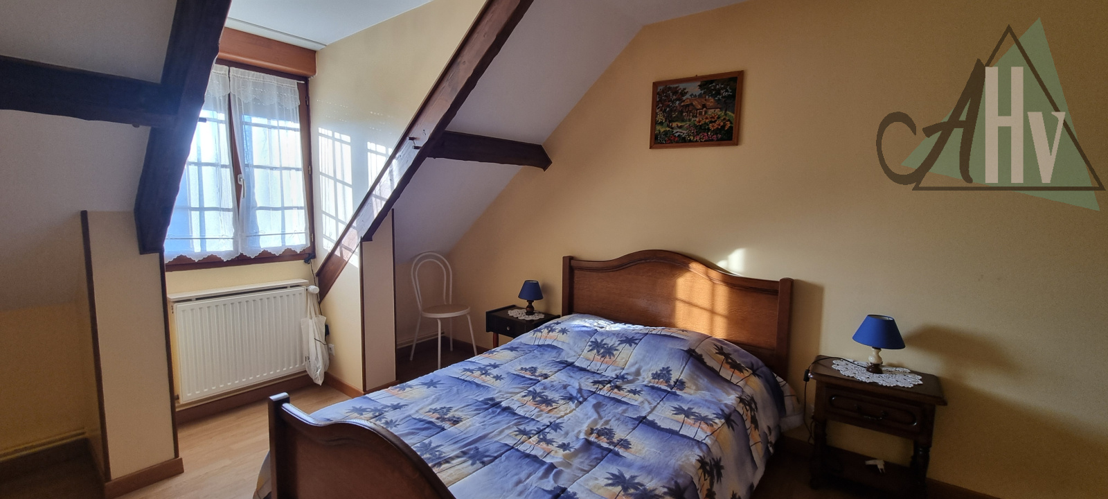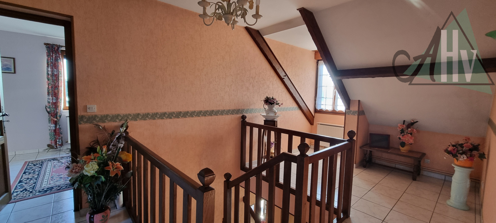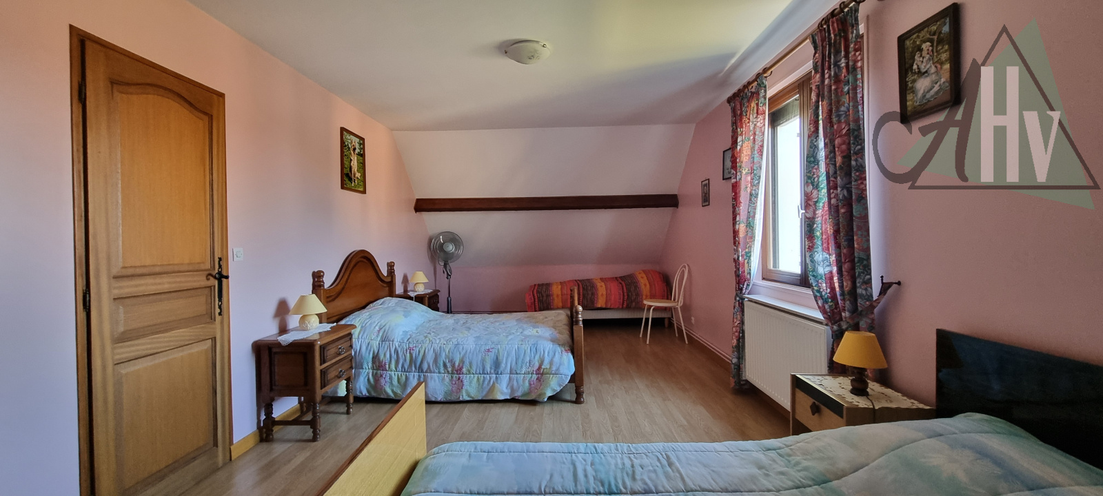 A l'étage : plier desservant trois grandes chambres (19 m², 19 m² et 11 m²), une salle de douche et WC séparés.