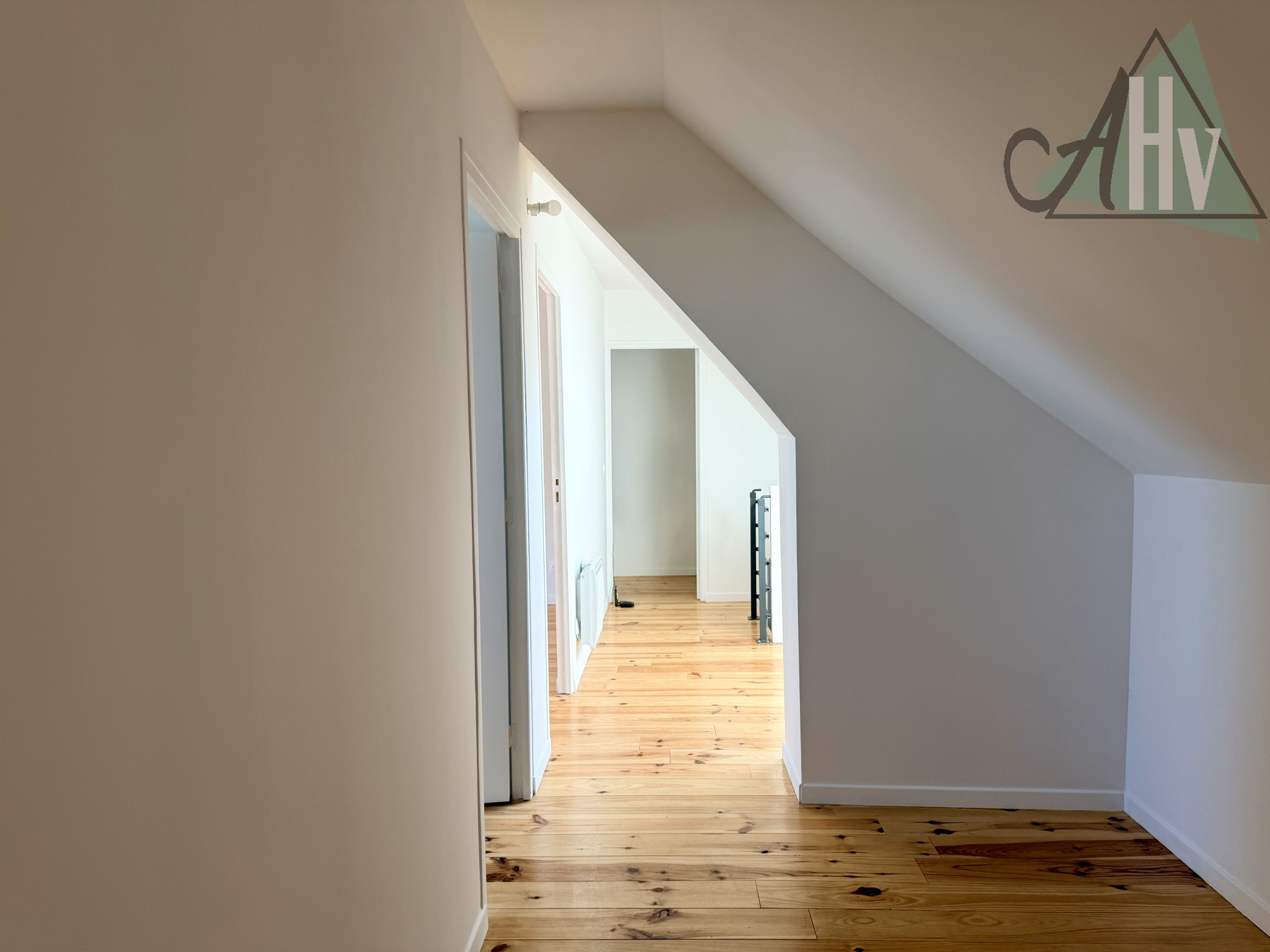 Le premier étage vous invite à découvrir d'un côté deux chambres, une salle de bains avec WC et placards de rangement, ainsi qu'un dressing. De l'autre côté une quatrième chambre et une salle de bains avec WC également.