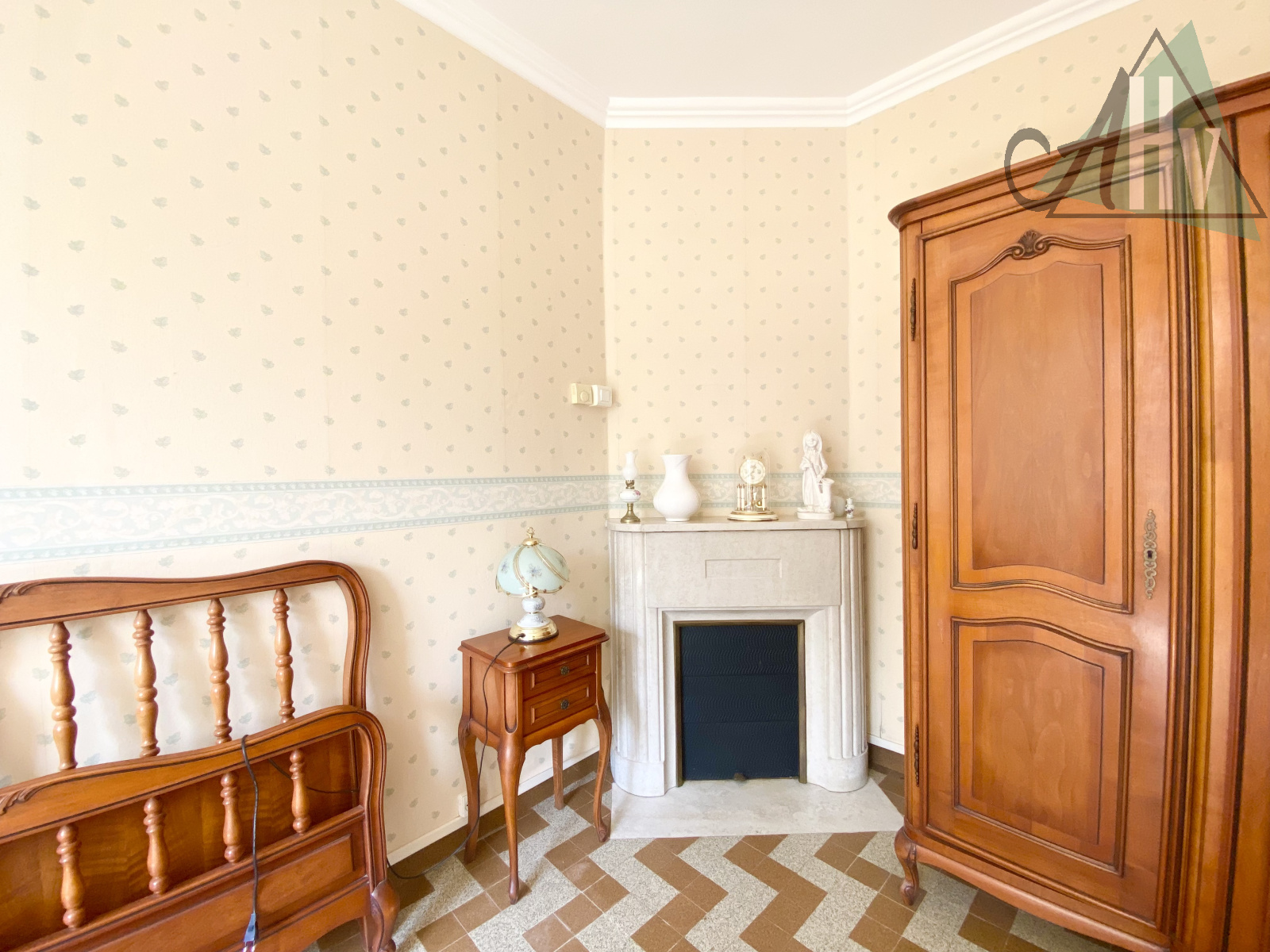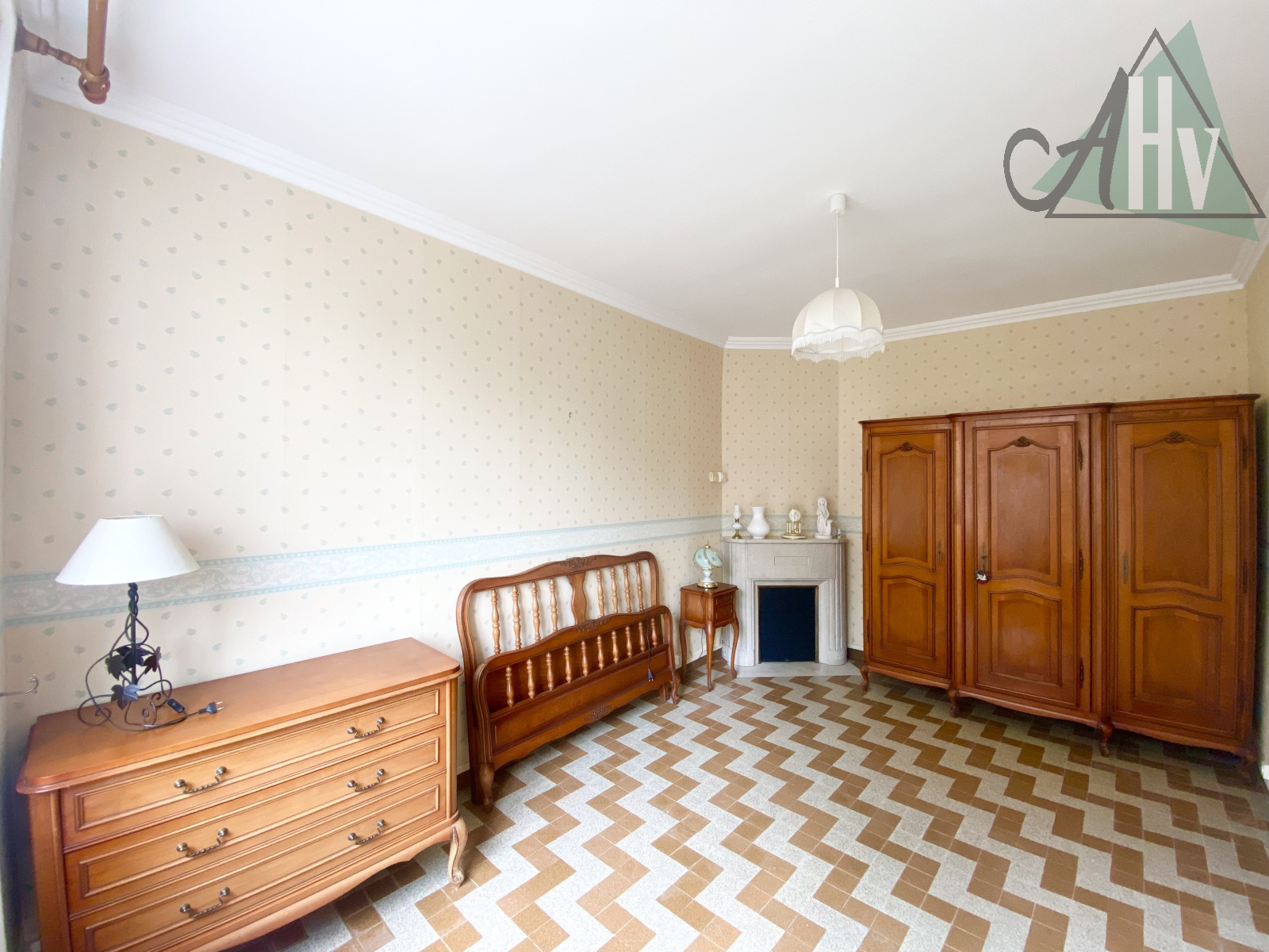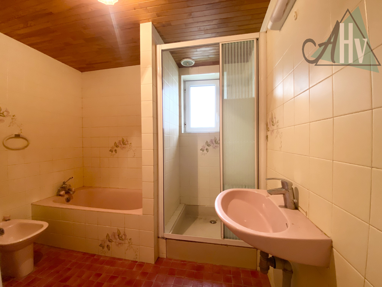 En empruntant le couloir doté de placards, vous accèderez à une chambre de 13m2 avec une cheminée, une salle de bains équipée d’une baignoire et d’une douche ainsi que d’une fenêtre, des WC séparés avec fenêtre également ainsi qu’une cave.