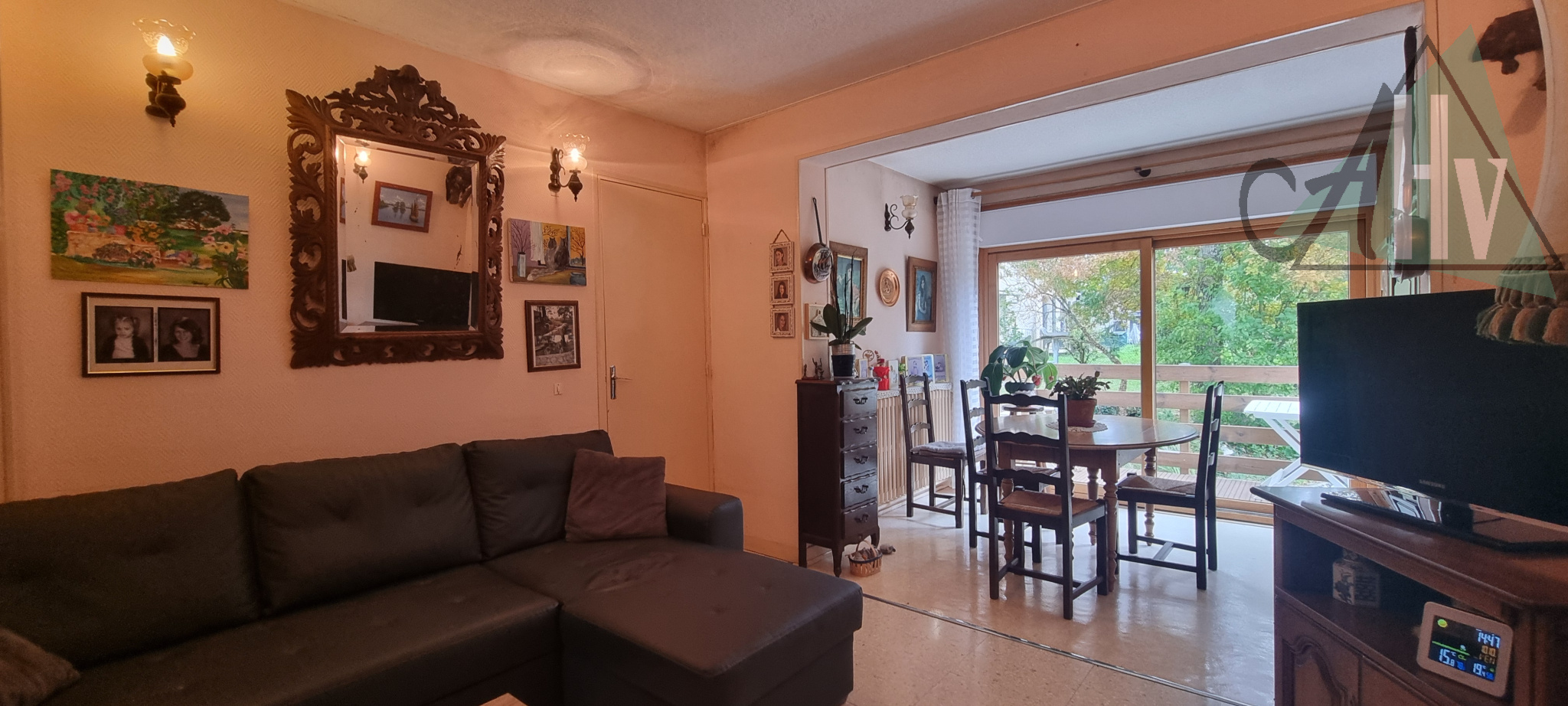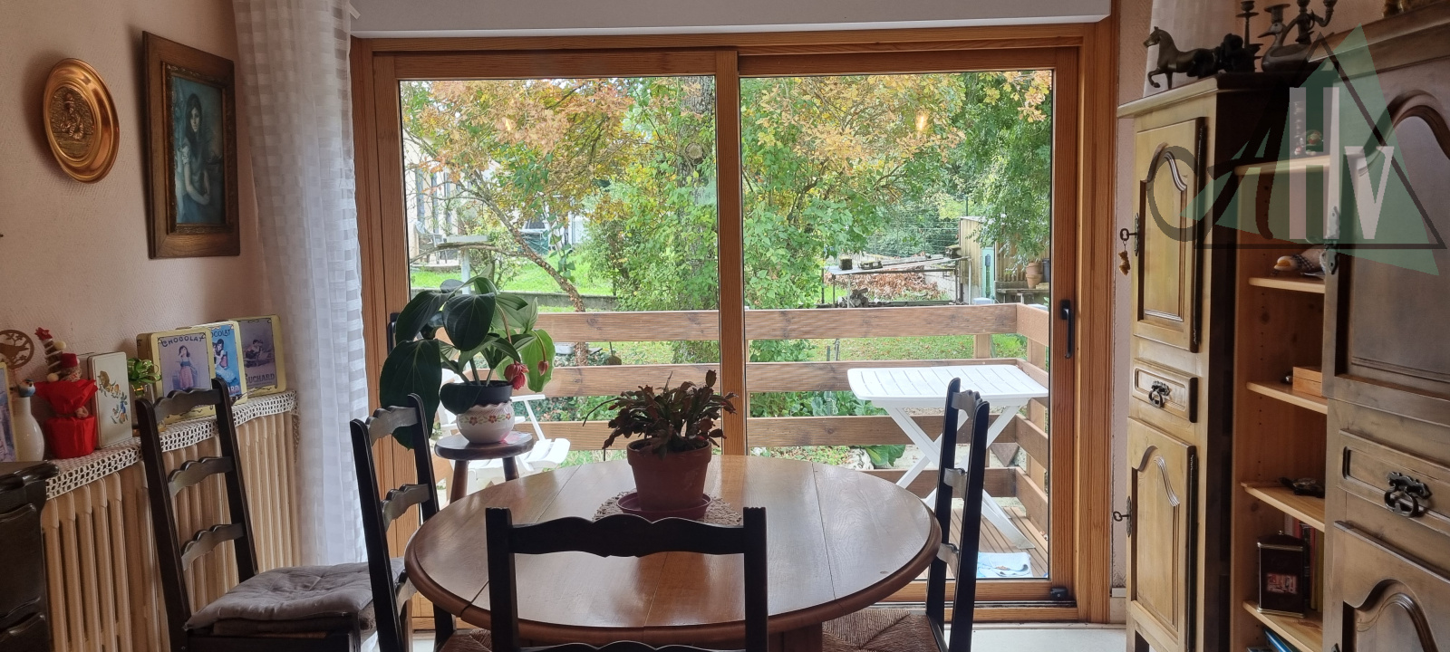 Ce bien se compose d’une entrée, un WC séparé, un salon-séjour avec terrasse, une cuisine, un bureau (8 m²), une salle d'eau, ainsi que deux chambres de belle taille où les parquets en bois d’origine ont été conservés.