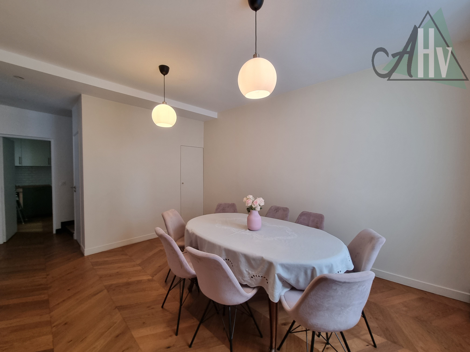 Il se compose d’une maison de ville entièrement rénovée de 120 m², comprenant au rez-de-chaussée : une entrée desservant un séjour, une salle à manger chaleureuse, une cuisine aménagée, et des toilettes indépendants.