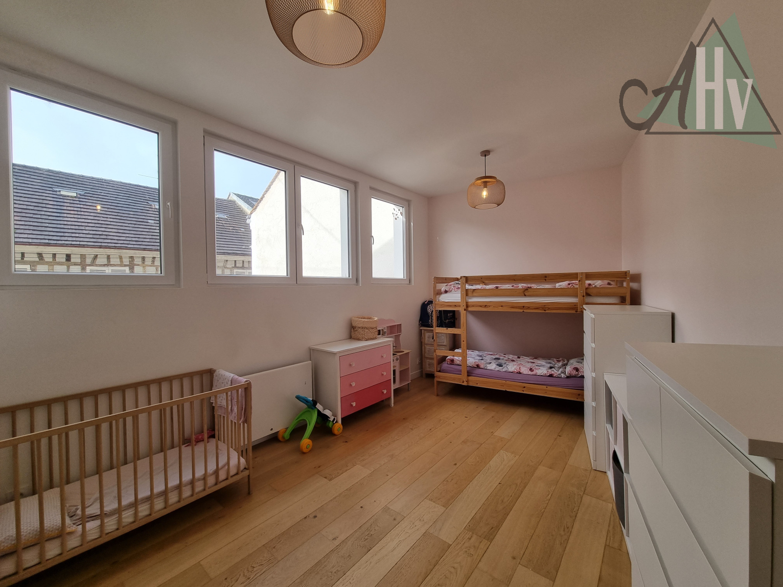 À l’étage, vous trouverez quatre chambres lumineuses, une salle de bain avec douche, un WC, un espace buanderie fonctionnelle et des rangements.